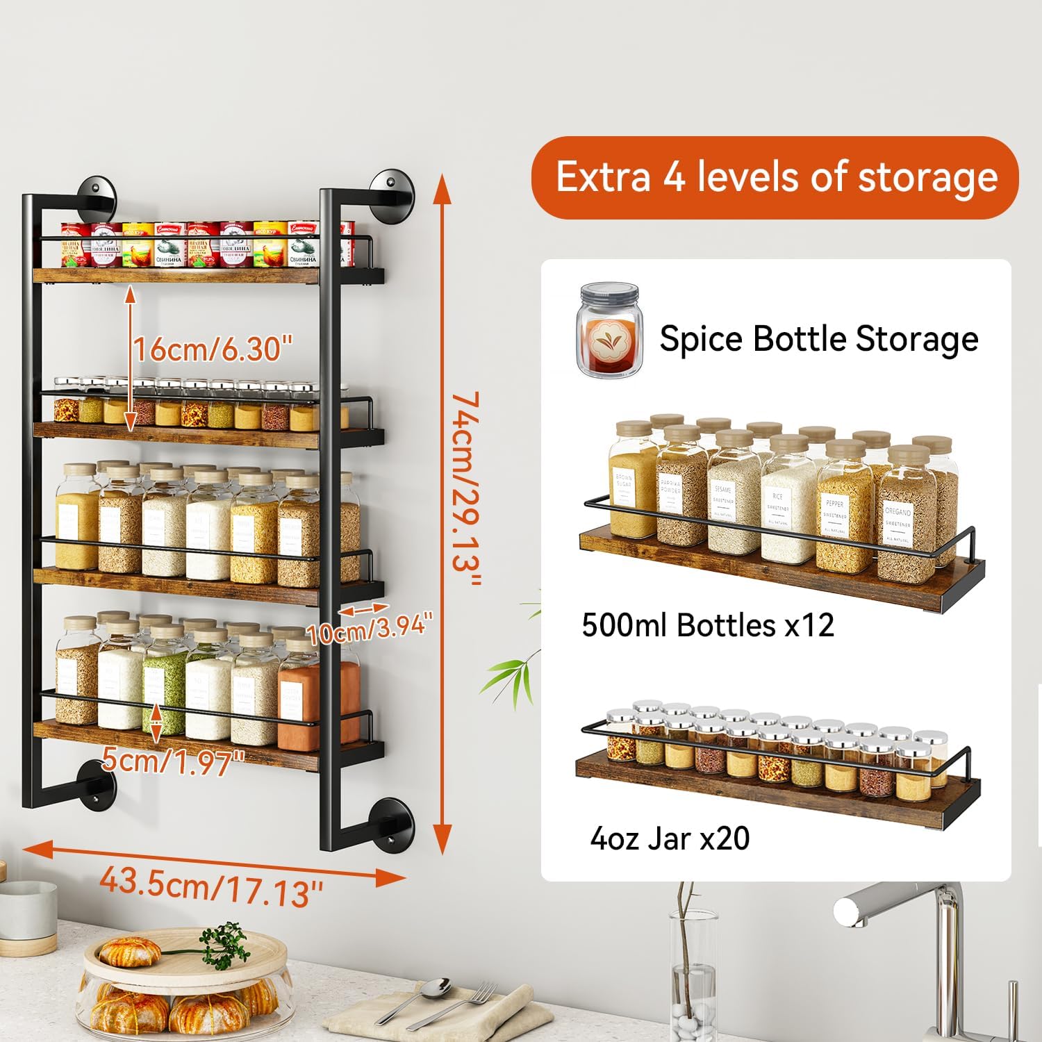 - WOODEN SPICE ORGANIZER: IBUYKE spice rack is made of 4 layers of chipboard and metal frame, with strong and stable structure and stylish appearance. The vintage look suits any room decor style and makes your kitchen or pantry look fabulous.Compared with most products on the market, our spice rack is more sturdy and durable with large capacity to meet your different needs.