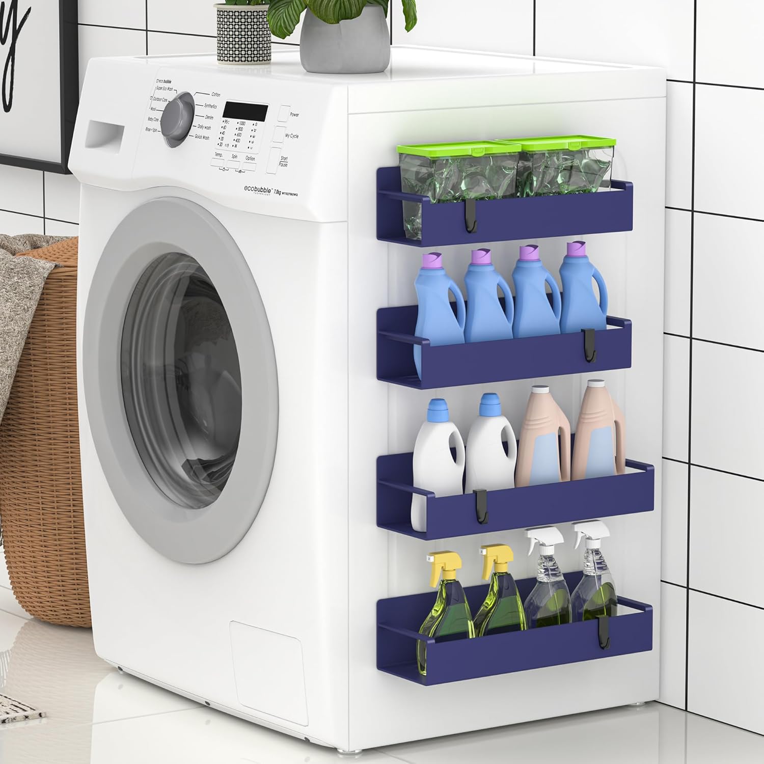4 Pack Magnetic Spice Rack Organizer for Refrigerator and Oven, Dark Blue Fridge Organizers and Storage for Kitchen