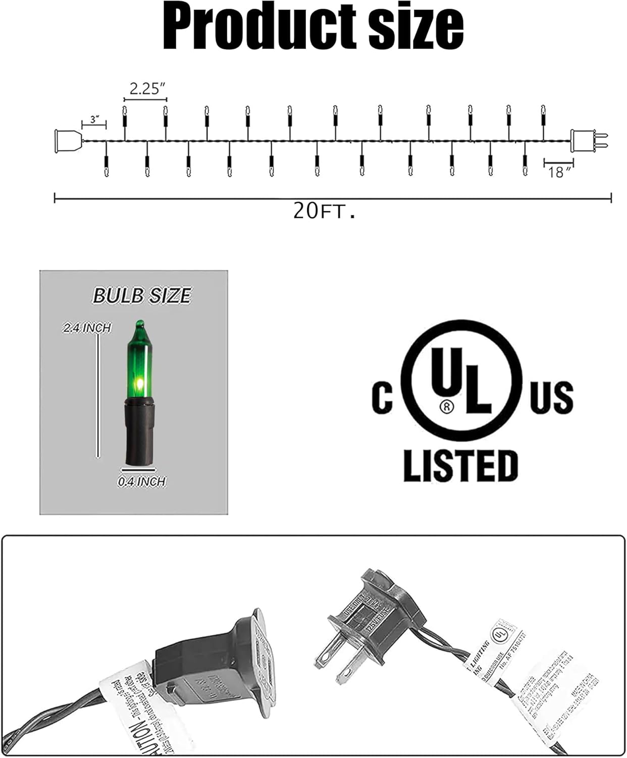 - Charming Halloween Lights: Package include 1 x 20 ft mini string light, 1 x spare fuse, 4 spare incandescent bulbs. The lighted length of Halloween mini string light is 18.5 ft, the leading wire is 1.5 ft, and the bulb space is 2.25 inch, work voltage of each bulb is 2.5V / 0.42W, safety with built in 3A fuse