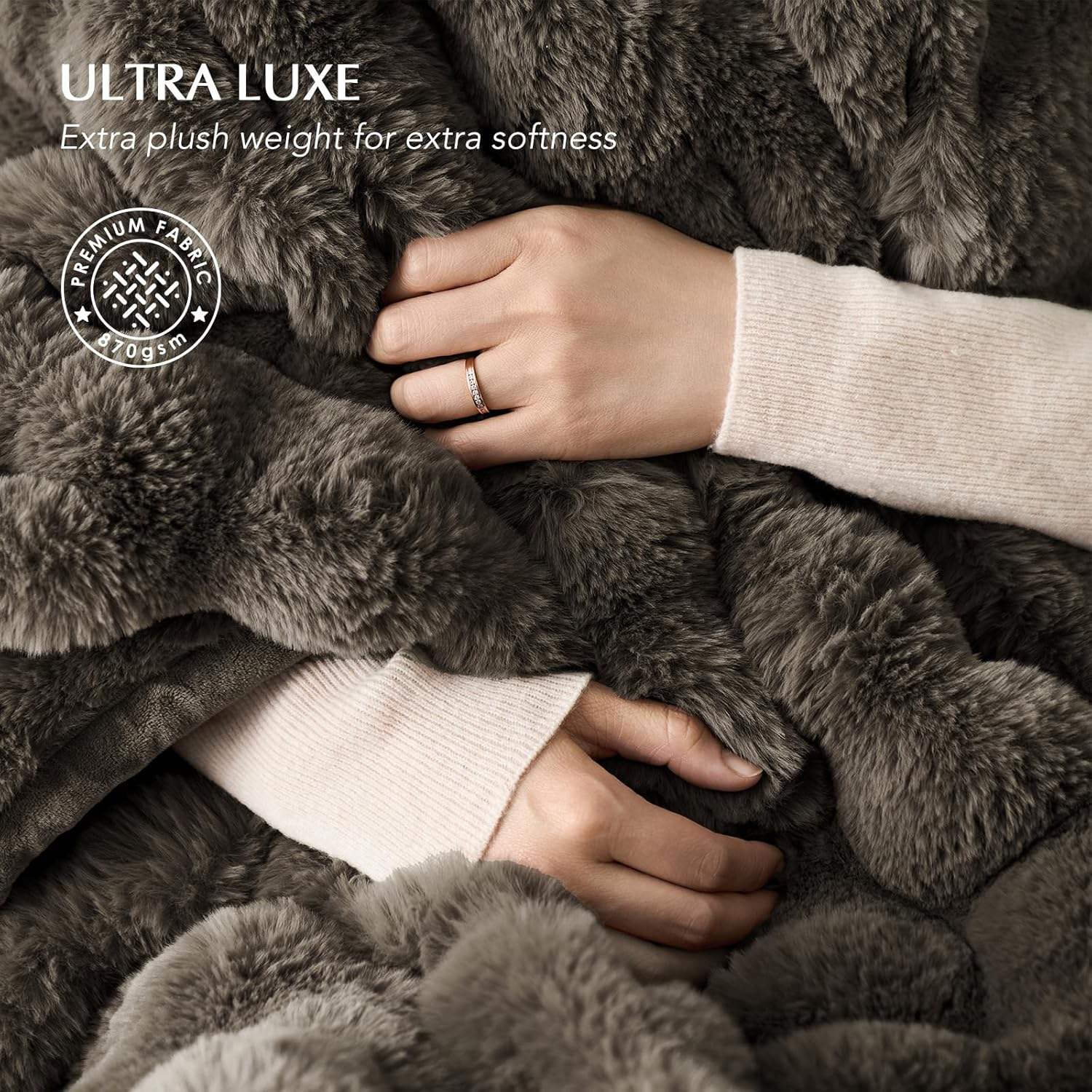 EVERGRACE Ultra Soft Luxury Fluffy Faux Rabbit Fur Throw Blanket, Thick Warm Fuzzy Blankets for Bed, Cozy Plush Reversible Blanket for Couch, Chair, Sofa, Dark Taupe, 50x60 Inches, 870 GSM