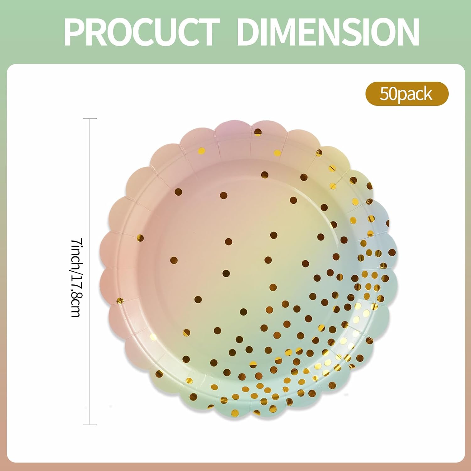 - 【PASTEL RAINBOW PARTY DECORATIONS】: Rainbow pastel party plates set comes with 50pcs rainbow paper plates, serve up to 50 guests, specifically for dessert plates size: 18cm/7inch, gold foil paper plates are exquisite and generous, the perfect party addition you've been looking for a guaranteed hit!