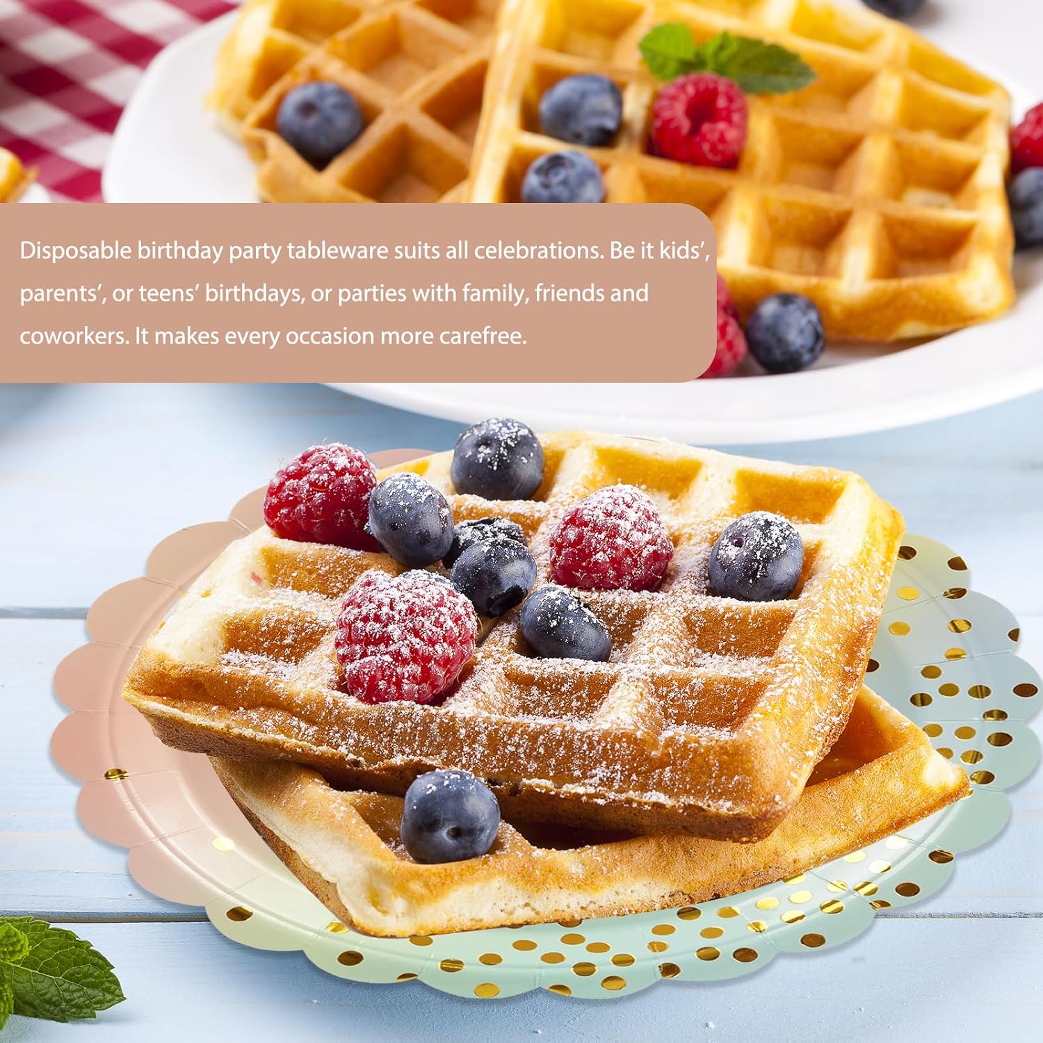 - 【FOR EVERY EVENT】: Elegant colorful paper plates for party is great for everyday and party use, like cocktail evenings, BBQ parties, family gatherings, bar decorations, picnics, elegant bridal showers, afternoon tea parties, birthdays, holiday celebrations, Christmas, New Years, Graduation Parties, and other occasions and events.