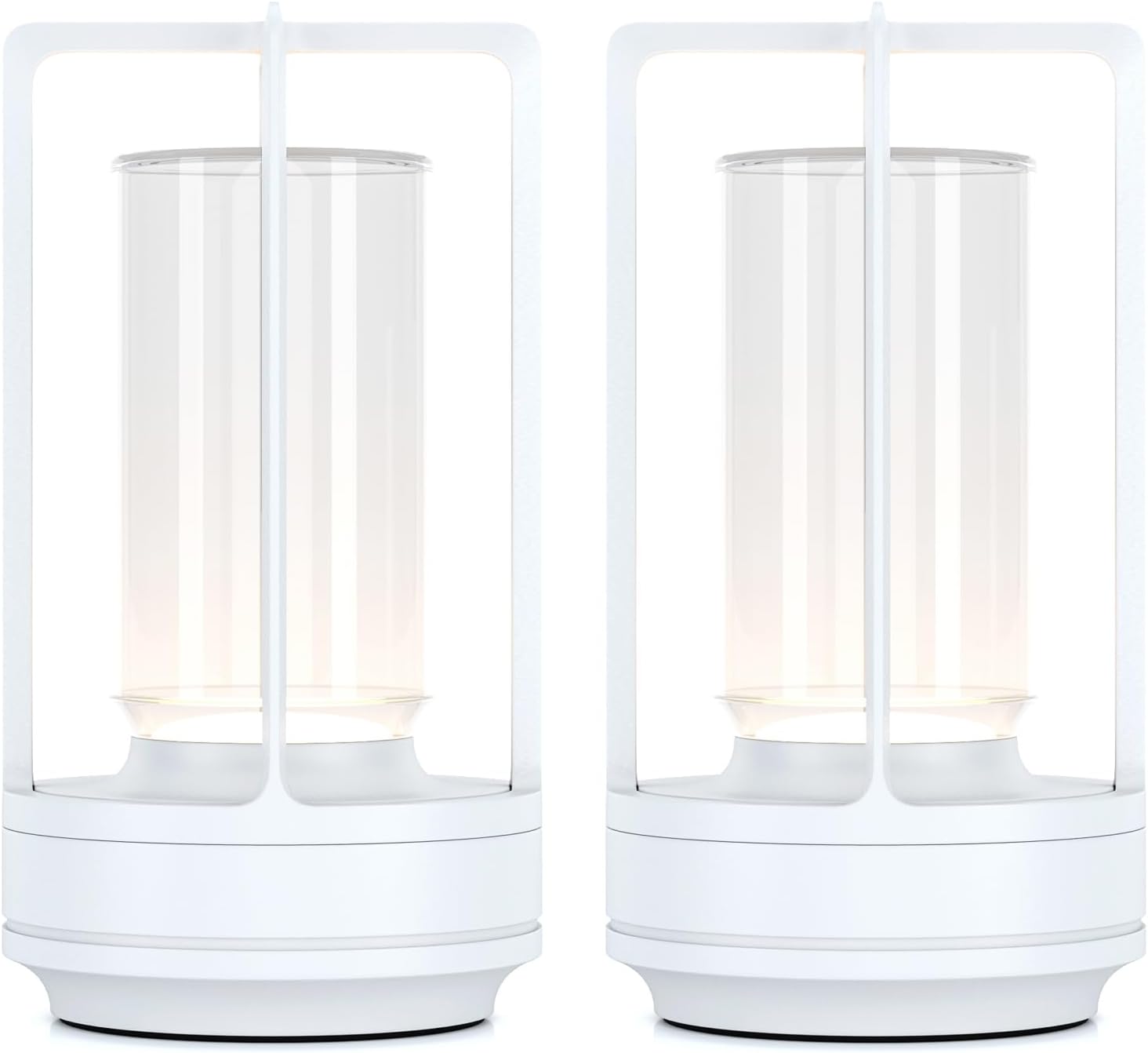 Portable Metal Table Lamp for Indoor/Outdoor ,Rechargeable Cordless LED Lamp, 3-Colour Infinitely Dimming Battery Powered Small Desk Lamp, Restaurant/Bedroom/Bar/Coffee/Camping Light (White Set of 2)