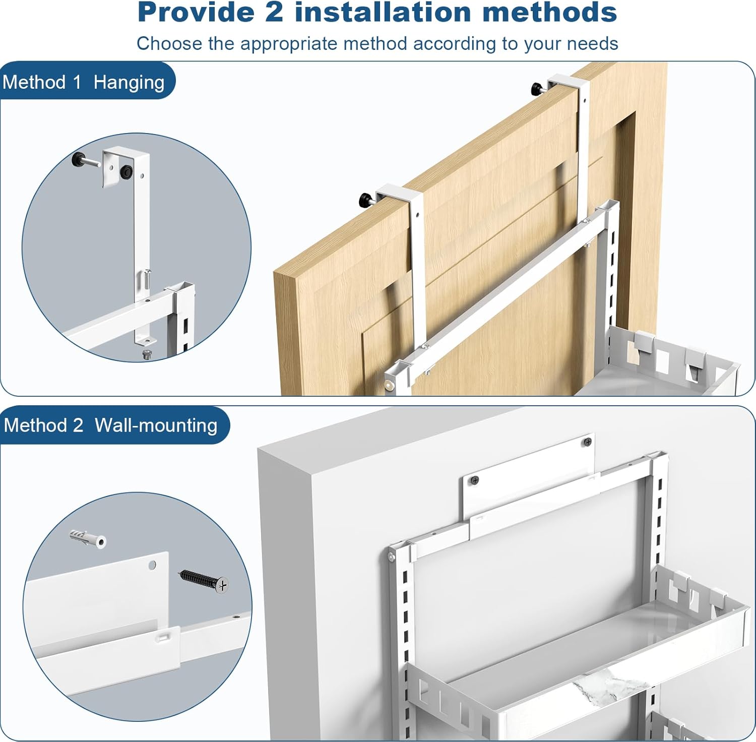 - 【Multifunctional and Multipurpose】Scattered bottles and jars on the wall receive, make the article such as kitchen, bathroom receive easily, hang namely. Door hanging and wall hanging are available. Used for the kitchen, bedroom, bathroom and other scenes to receive, let your home become neat and beautiful
