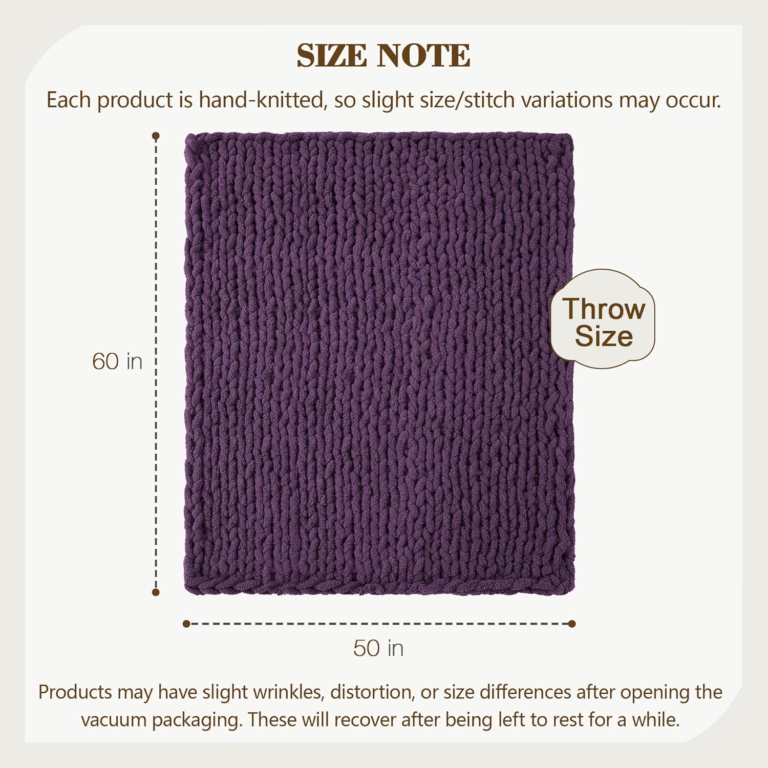 Carriediosa Chunky Knit Throw Blanket 50" X 60", 100% Hand Made Large Chenille Loop Yarn Soft Fluffy Throws for Couch Sofa Bed, Big Crochet Cozy Heavy Thick Cable Woven Blanket, Dark Purple