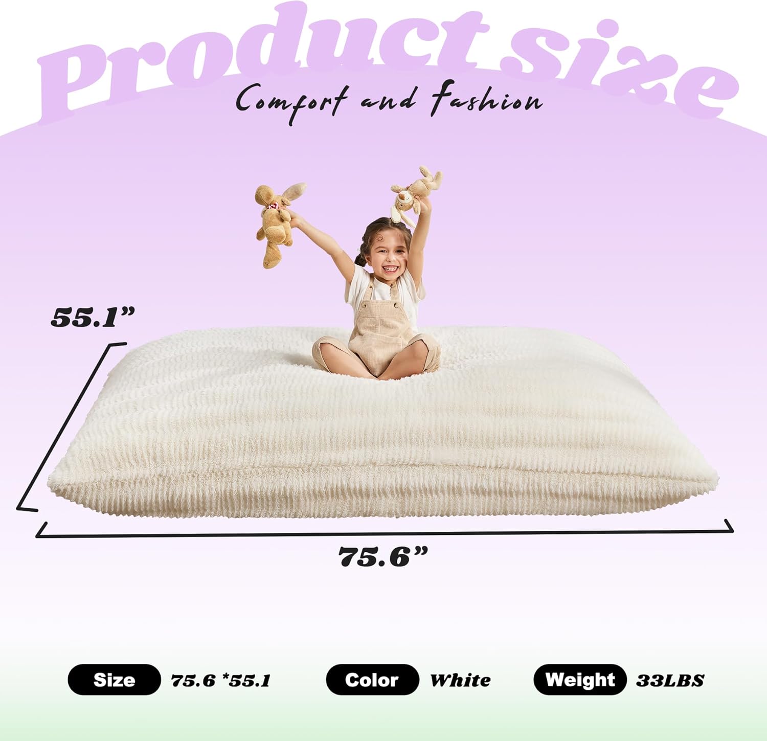Hobestluk 3 in 1 Bean Bag Chair Giant Bean Bag Chairs for Adults with Ripple Cover Convertible Bean Bag Floor Cushion with Machine Washable Cover for Living Room (Ripple White)
