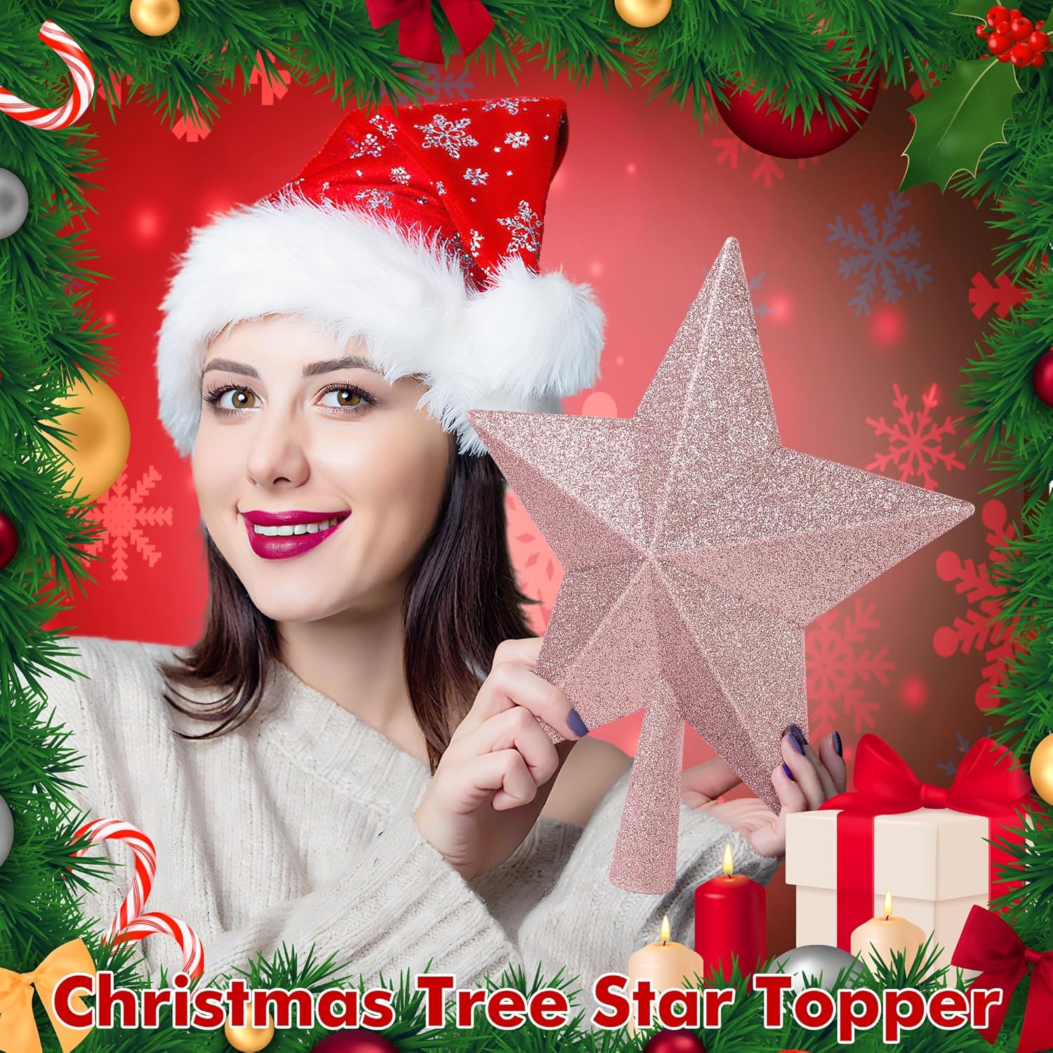 Christmas Tree Top Ornament, 10" Rose Gold Christmas Star Tree Topper, Large Xmas Glitter 3D Bethlehem Tree Topper Ornament, Waterproof Holiday Christmas Tree Topper Star for Home Indoor Outdoor