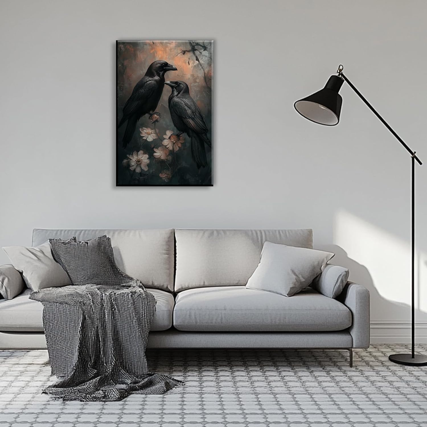 OAAPITI Birds Canvas Wall Art Black Couple Crow Picture Print Vintage Gothic Raven Artwork for Living Room Halloween Home Wall Decor(Artwork-7,16"x24")