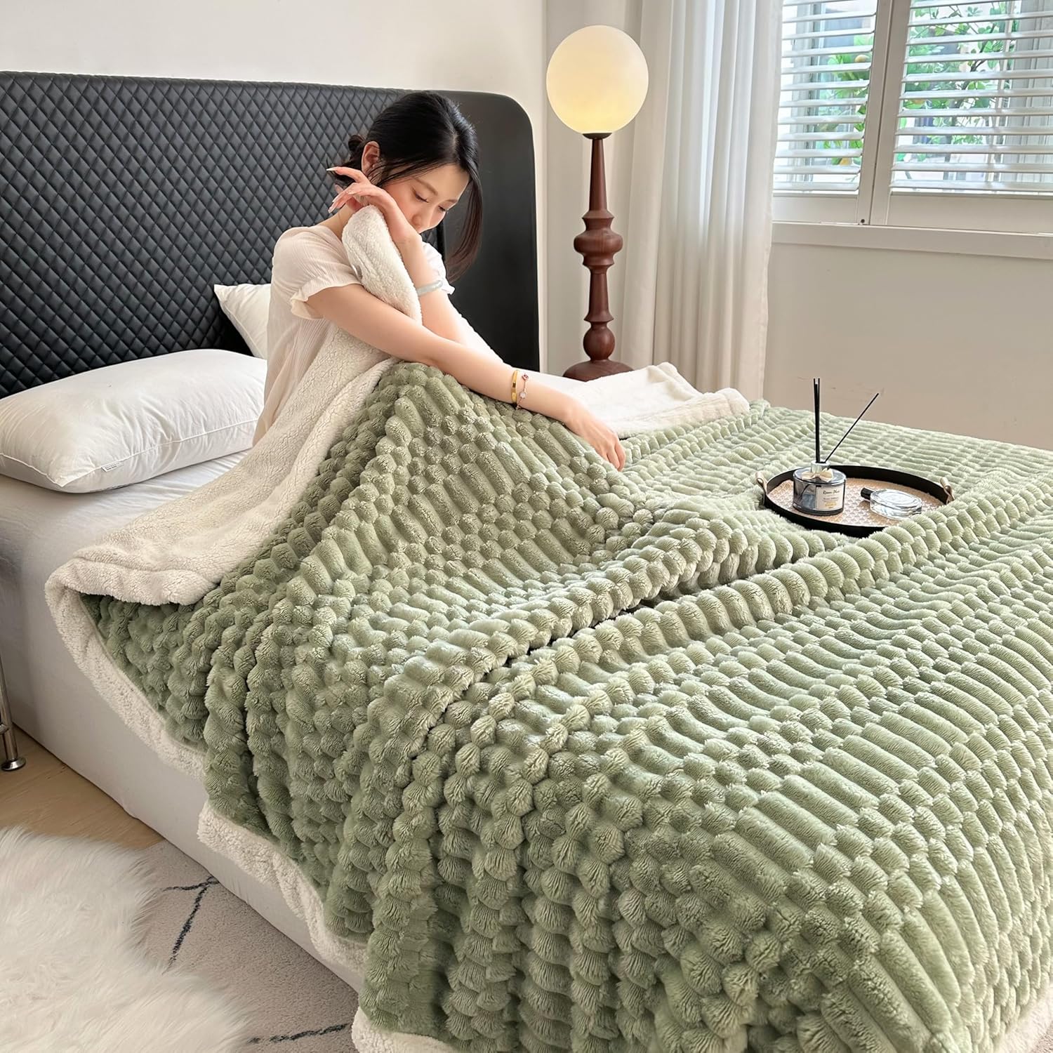- Unique Design:coral fleece Jacquard face and sherpa fleece reverse with stripe design offer you a softer touch. Snuggling on your couch or bed with our blankets to enjoy happy hours. Different colors meet your needs.