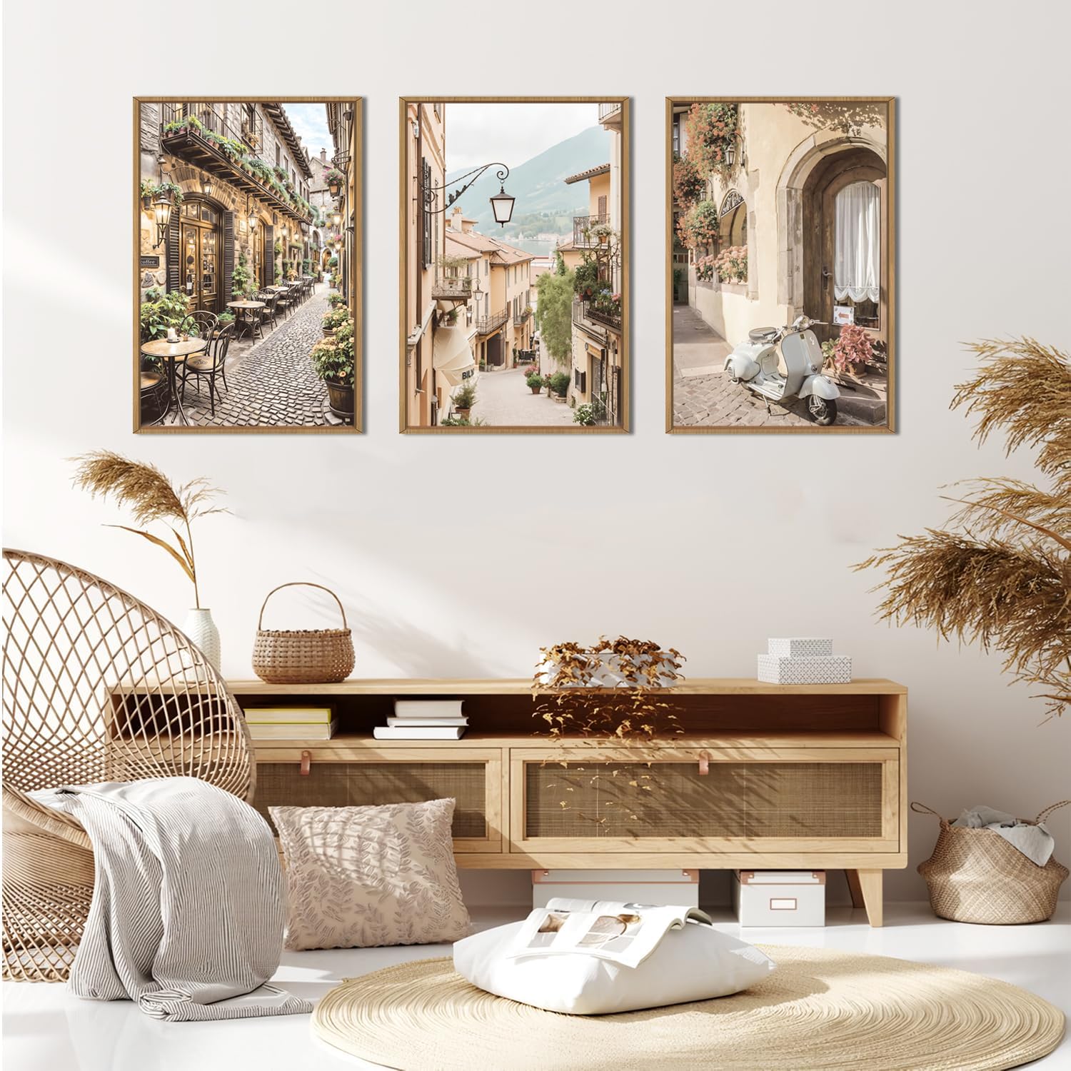 HPINUB Foreign Scenery Framed Canvas Wall Art Set,Vintage Travel City Wall Decor,Modern Minimalist Europe Street Picture Artwork Nature Landscape Art Print for Living Room,Bedroom-16 x24 x3