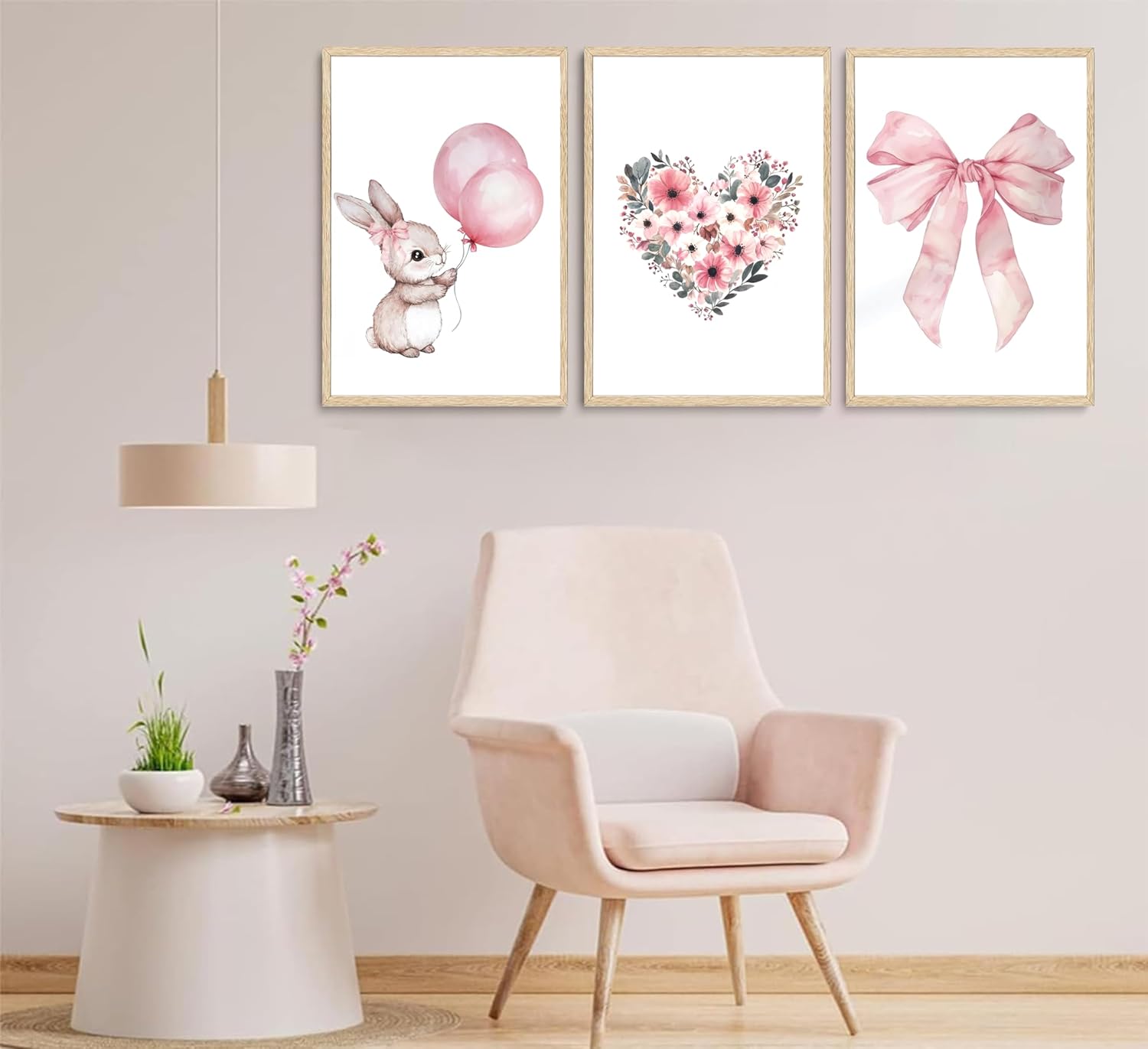 - 【Floral Bunny Wall Art】:This delightful piece features a bunny holding a balloon and is accented with pink love wildflowers and bows, making it the perfect addition to any nursery or child's room.
