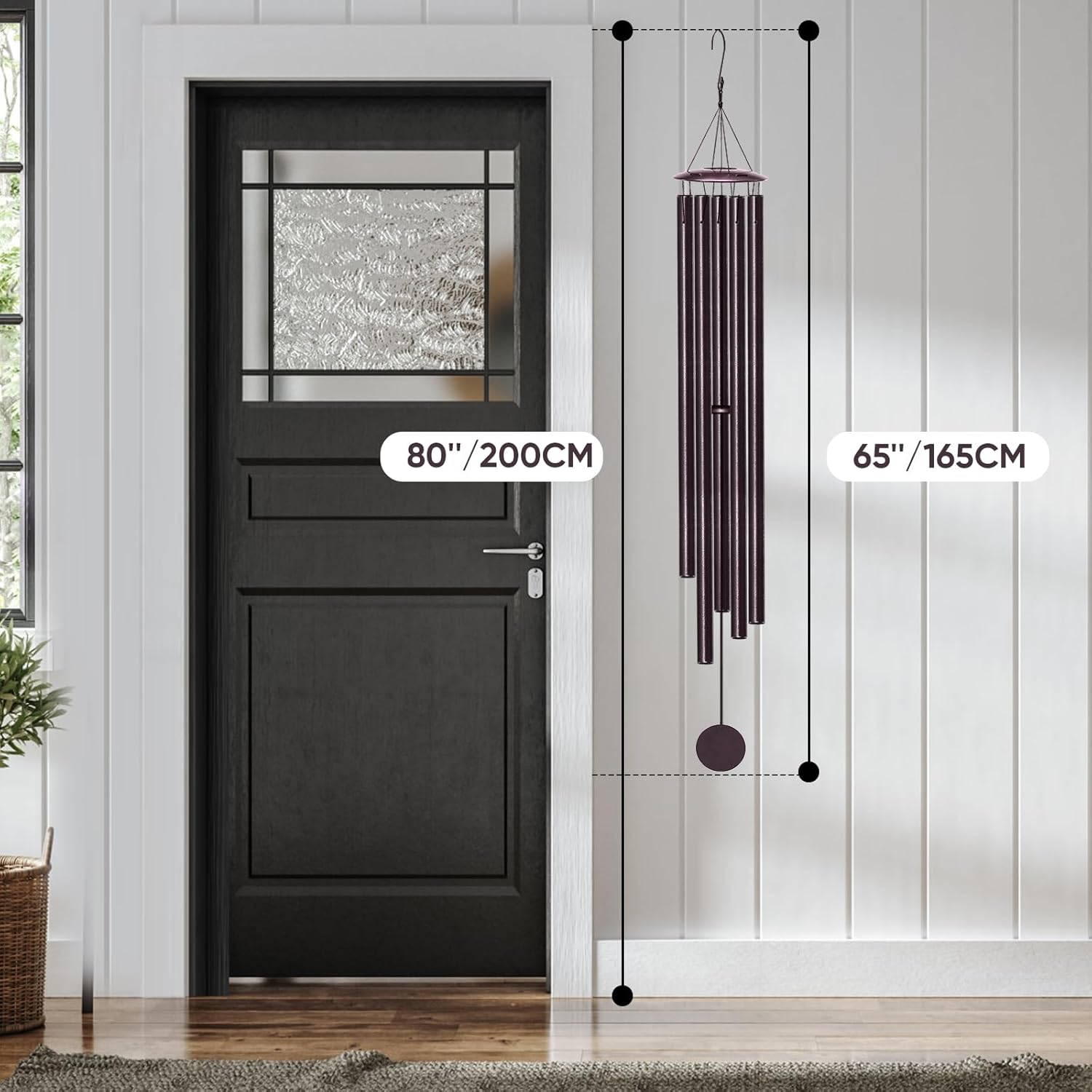 - [ Melodious Deep Tone] Our 65 inches extra large wind chimes, with deep and melodious tones, bring tranquility and harmony to your outdoor space. Our deep tone wind chime features the longest aluminum tube measuring 35.5 inches and the shortest at 27.5 inches, ensuring a deep and enduring sound quality that meets your expectations.