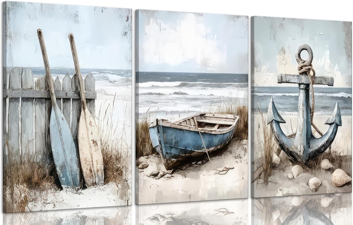 - Ocean Beach Theme:Elevate your home decor with our 3pcs Canvas Sailboat Paddle and Anchor Wall Art, perfect for adding a touch of coastal charm to any space.