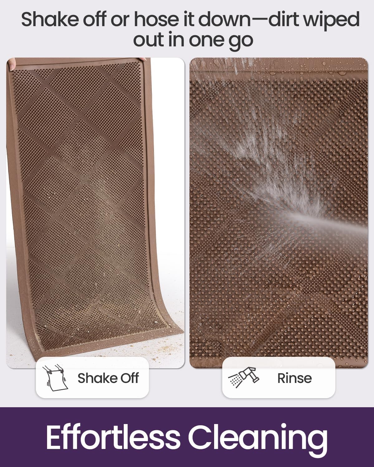 - Easy to Clean: Simply shake off dust and debris for daily maintenance. For a deeper clean, use a hose to rinse the mat to remove mud and dirt. Always dry in well-ventilated areas. Easy upkeep for busy households or entrances