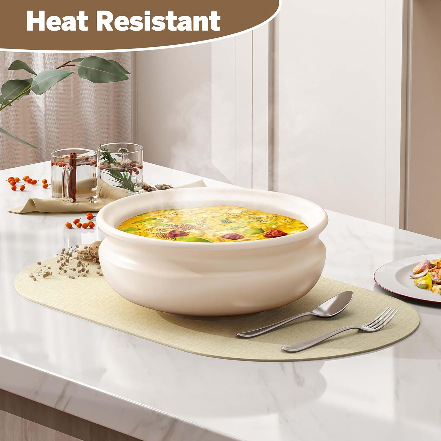 - 【Reversible & Non-slip Design】Say goodbye to slipping placemats. The subtly textured, double-sided surface resists wear, stays in place, and helps reduce noise for a quieter, more sophisticated dining experience. The tasteful colors and elegant oval shape add charm to any table—perfect for modern, farmhouse decor or light luxury interiors.