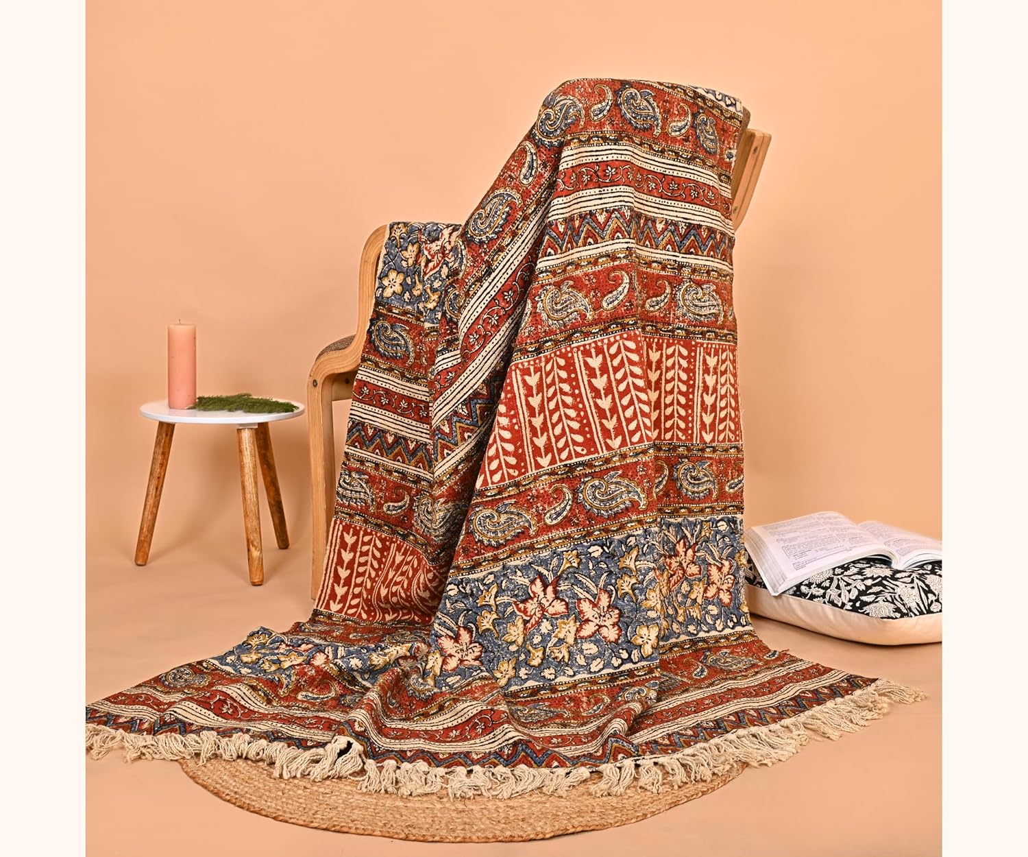 - Handcrafted Floral Block Print by SARVAA: This cotton throw features a hand-applied Indian block print, showcasing delicate floral patterns that add a warm, artisanal touch to any space—from bedrooms to cozy reading corners.