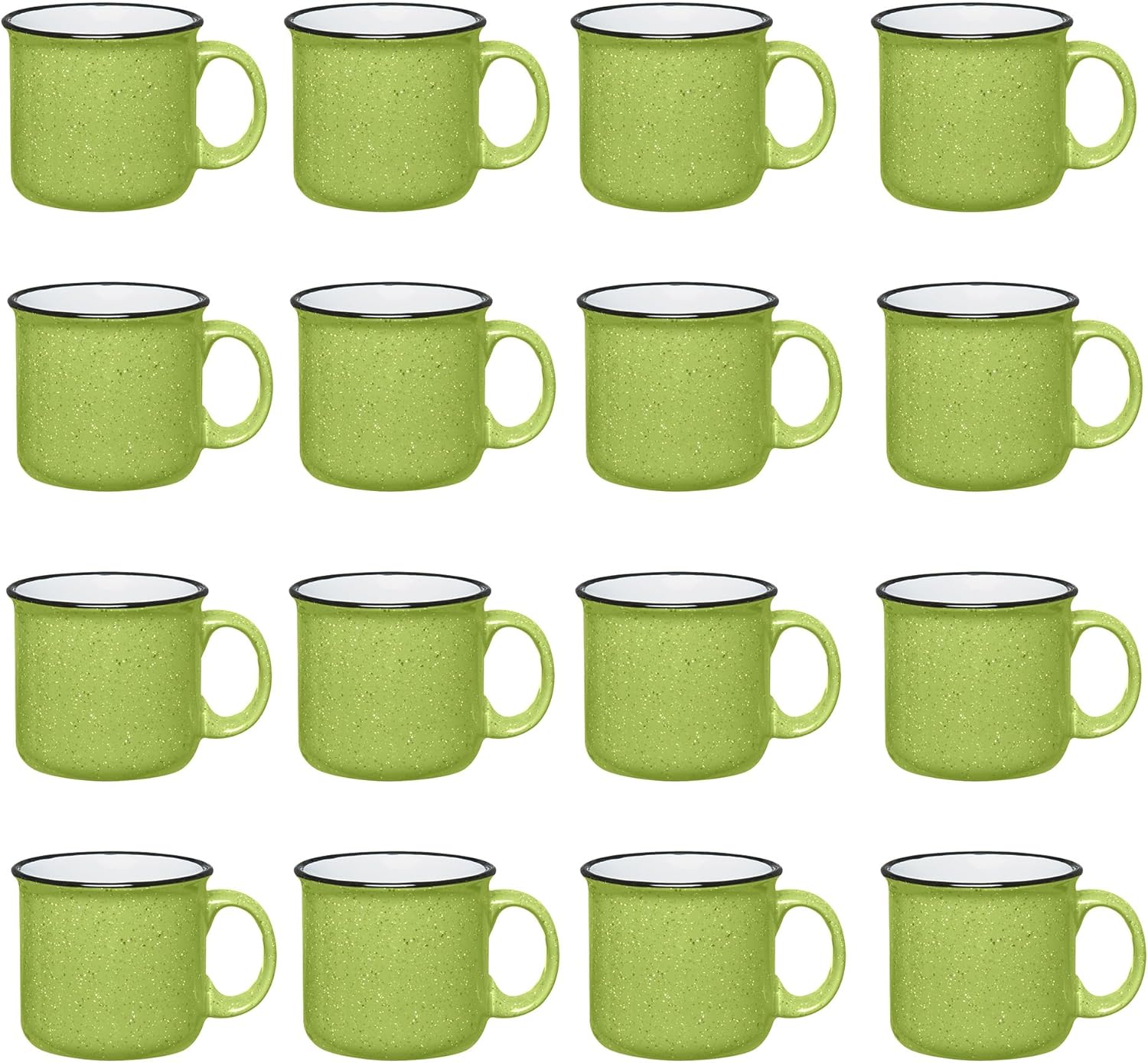 Set of 16 Ceramic Campfire Mugs – 15 Oz, Lime – Coffee & Tea Cups for Home, Work, Travel, Camping – Customizable, Great for DIY, Events, Companies