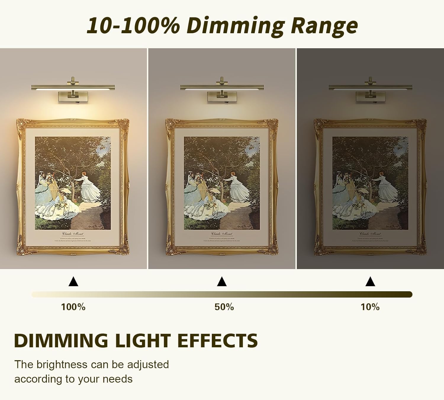 - Dimmable And Timer Function: The battery picture light is 10-100% dimmable and of timer function with the remote control. The art light can automatically turn off in 0.5-4 hours to match your needs.