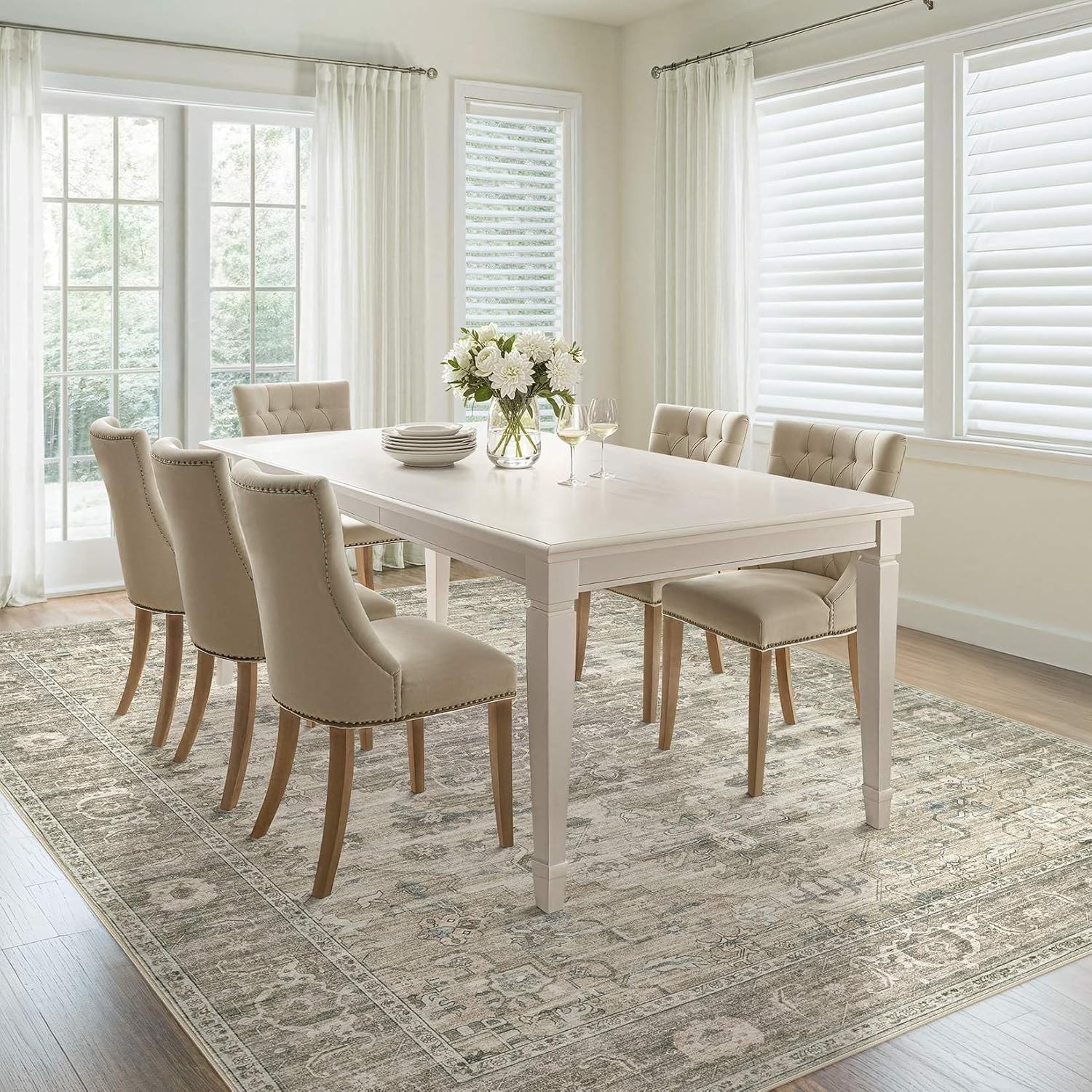 Washable Area Rugs for Living Room -10x14 Neutral Vintage Distressed Floral Farmhouse Boho Large Soft Floor Rug Indoor Non Slip Carpet for Living Room Bedroom Dining Room Office -Brown/Tan