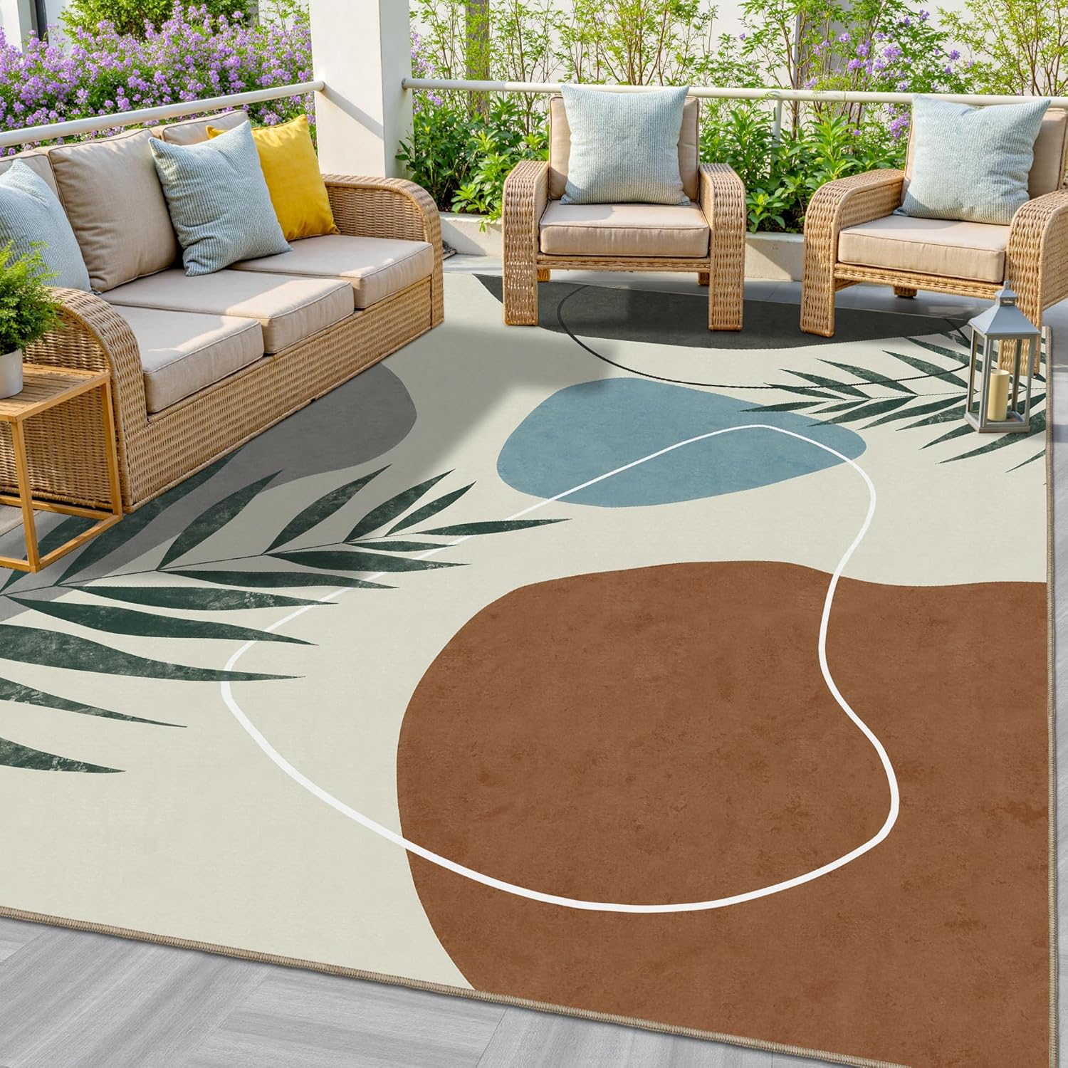 - Non Slip Backing: Featuring a sturdy non-slip backing, this outdoor patio rug provides stability and safety, making it perfect for high-traffic areas and ensuring it stays in place, even on breezy days.