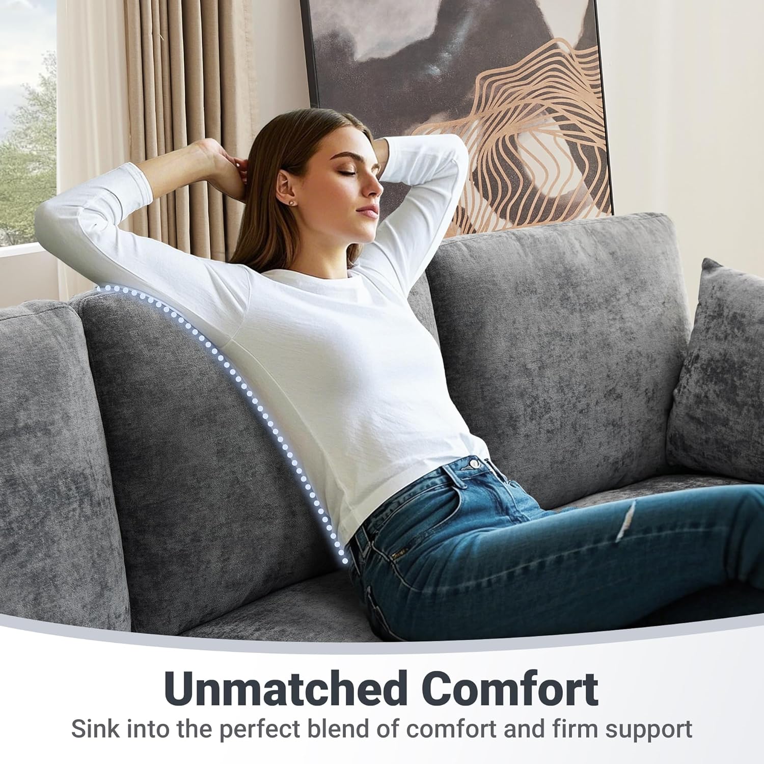 - Cloud-Like Comfort - Crafted with high-density foam and quality springs, this cloud couch delivers adaptive support, prevents sagging while maintaining shape. Enjoy balanced softness, pressure relief, and long-lasting durability—ideal for your living room. Relax in ultimate comfort!