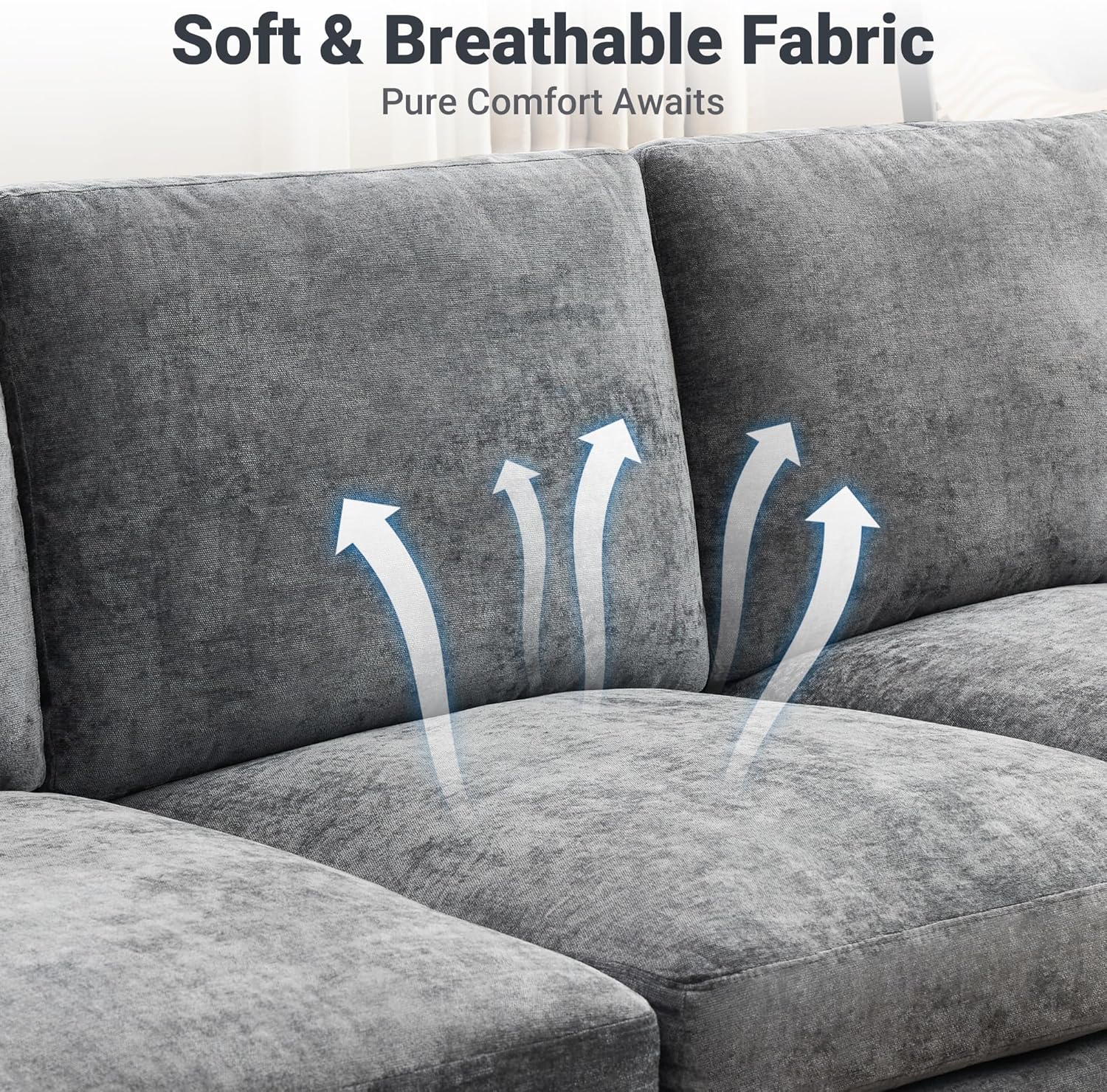 - Chenille Fabric - Wrapped in chenille fabric, this sectional couch combines velvety softness with everyday durability. The dense, textured weave resists pilling while maintaining its plush feel, and its naturally breathable properties keep you comfortable in any season.