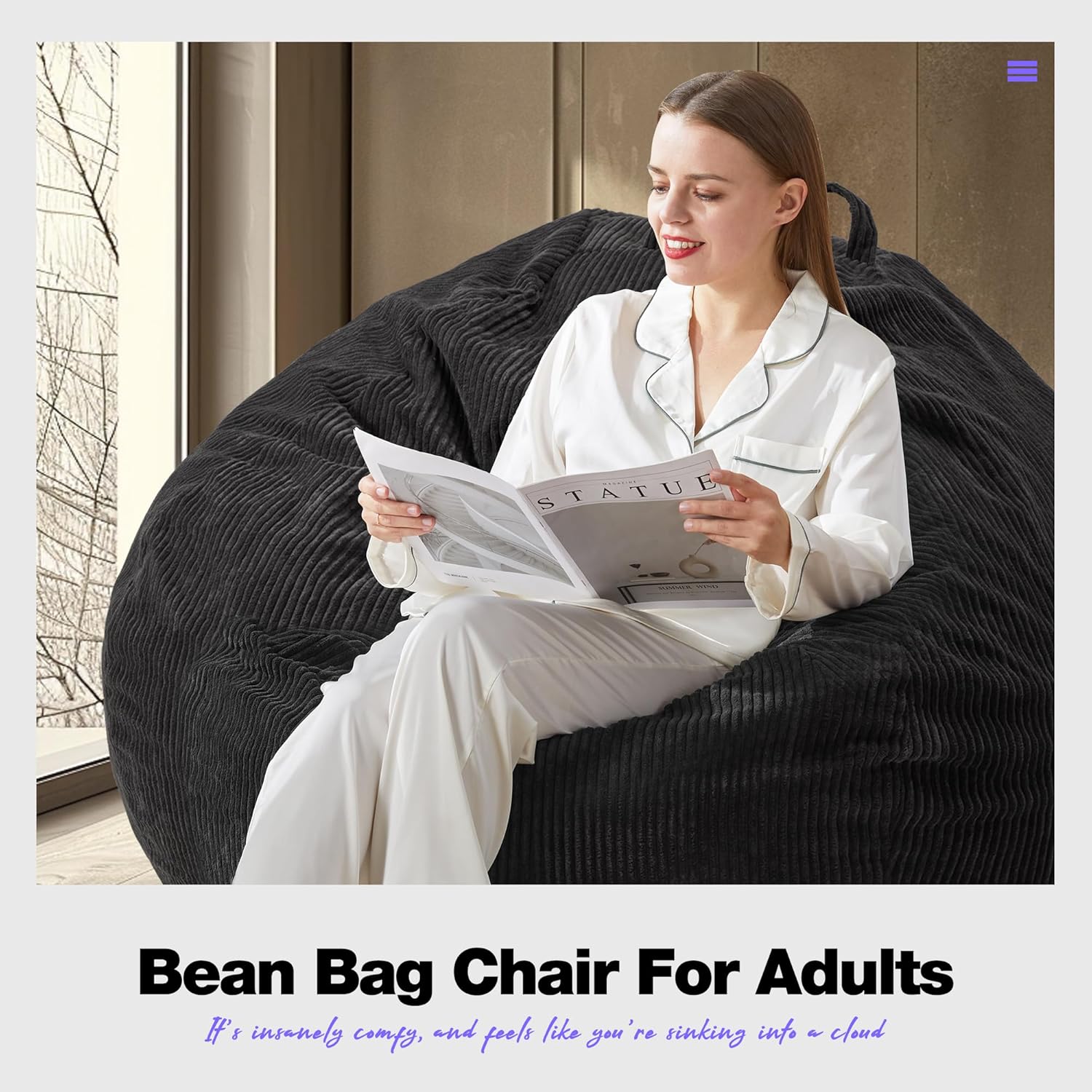 Hobestluk 4.5FT Bean Bag Chair Giant Bean Bag Chair with Filler Included Adult Bean Bag Chairs with Removable Cover for Bedroom Living Room - (Jumbo, Black)