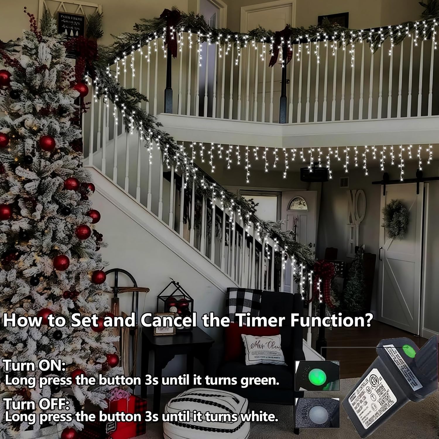 - 8 Impressive Modes Christmas Icicle Lights: Christmas icicle lights has 8 different settings(β fireflies flashing β‘ waves fading β’ chasing β£ flashing β€ fading slowly β₯ twinkle β¦ flashing β§ steady on) through the button on the back of the transformer. Different Modes add a playful touch to any occasion, like Christmas, Wedding, Birthday, Anniversary and more, enjoy beautiful and cheerful ambience and enrich your holiday atmosphere.