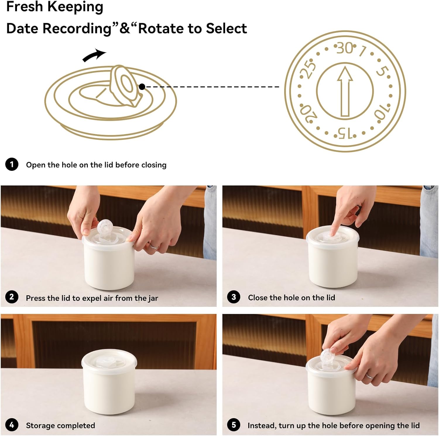 - Built-in Date Tracking System - The innovative rotating dial (MM/DD) on the lid can clearly mark the storage date at a glance. Use expiration reminders to reduce food waste. At the same time, flipping the dial can open or close the air holes, which is conducive to the preservation of the items inside and enhances the tightness of the cover.