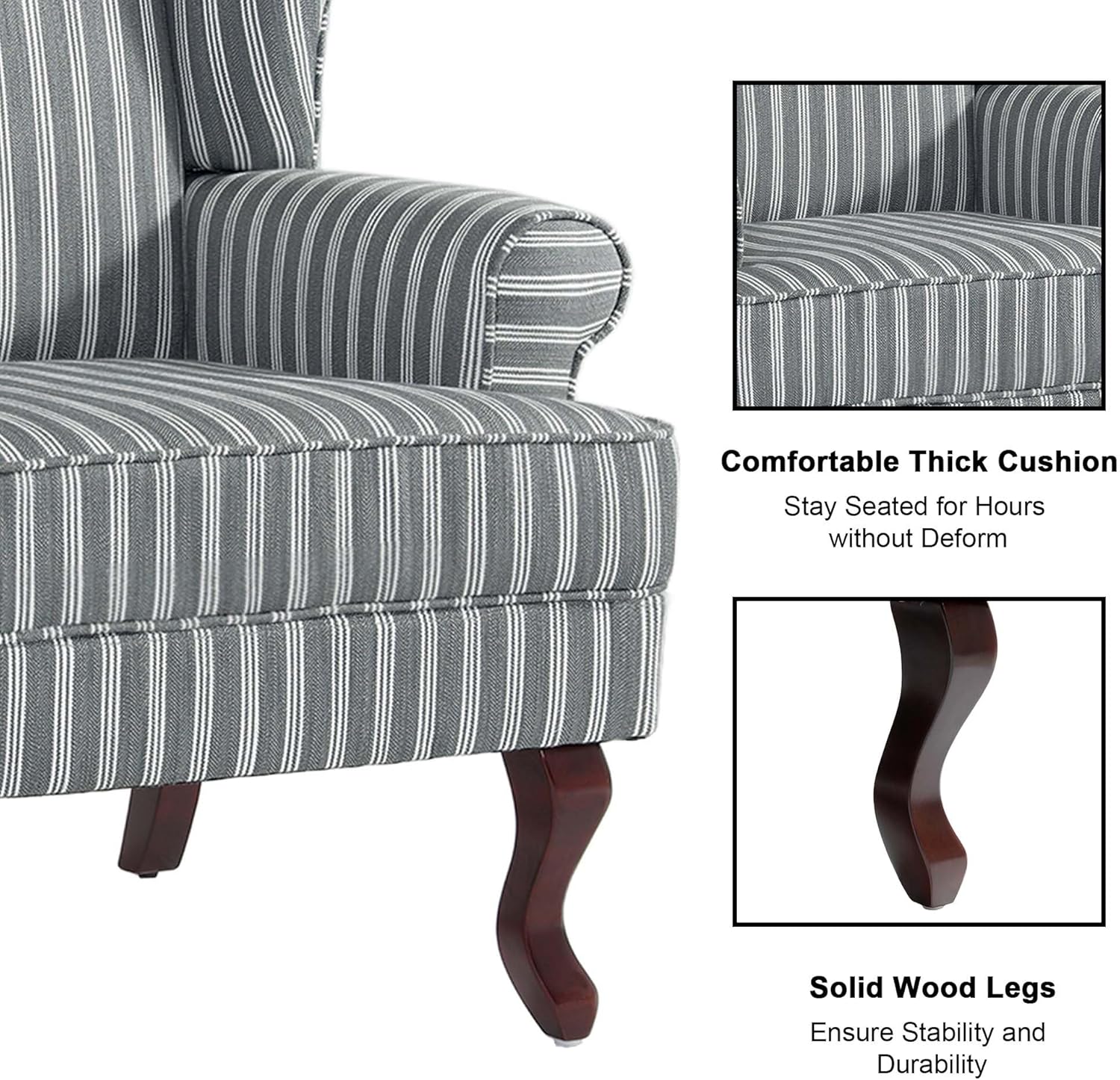 - High Wingback Chair Design: The back of arm chair is higher, which can better relieve the pressure on the back and waist, and bring a comfortable sitting experience