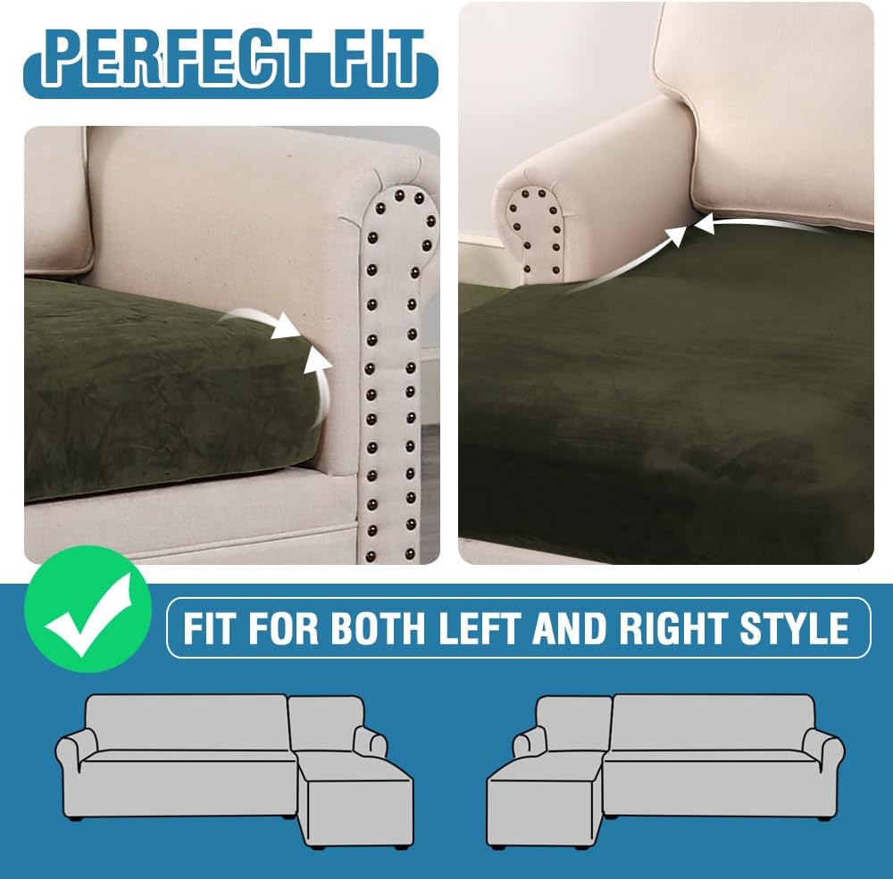 H.VERSAILTEX Velvet Stretch Sectional Couch Covers 4 Pieces Sofa Seat Cushion Covers L Shape Separate Couch Cover for Both Left/Right Sectional Couch (Large Sofa 3 Seater + 1 Chaise, Olive)