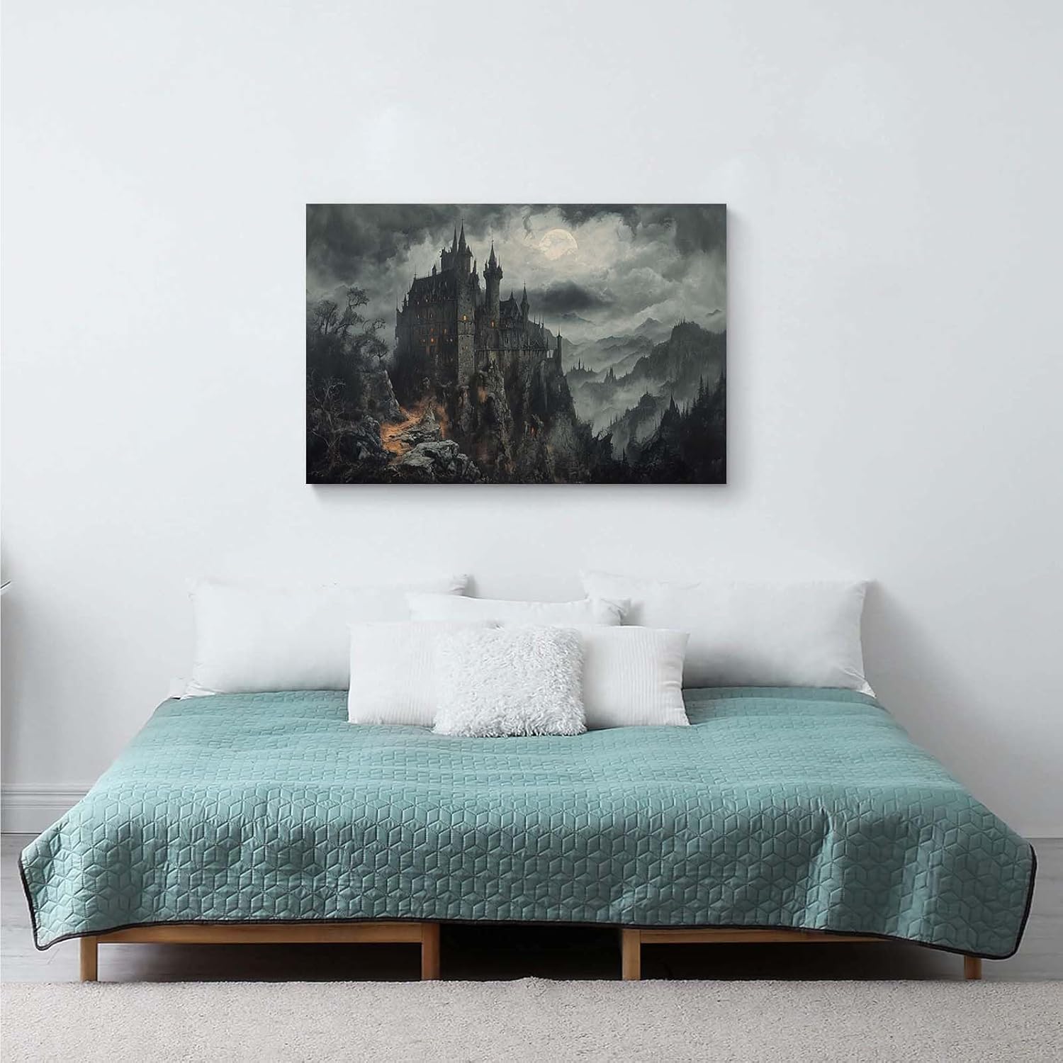Vintage Castle Poster Dark Academy Victorian Gothic Castle Wall Art Poster Moody Mystical Art Print Suitable for Home Living Room Bedroom28x40in Wood Framed