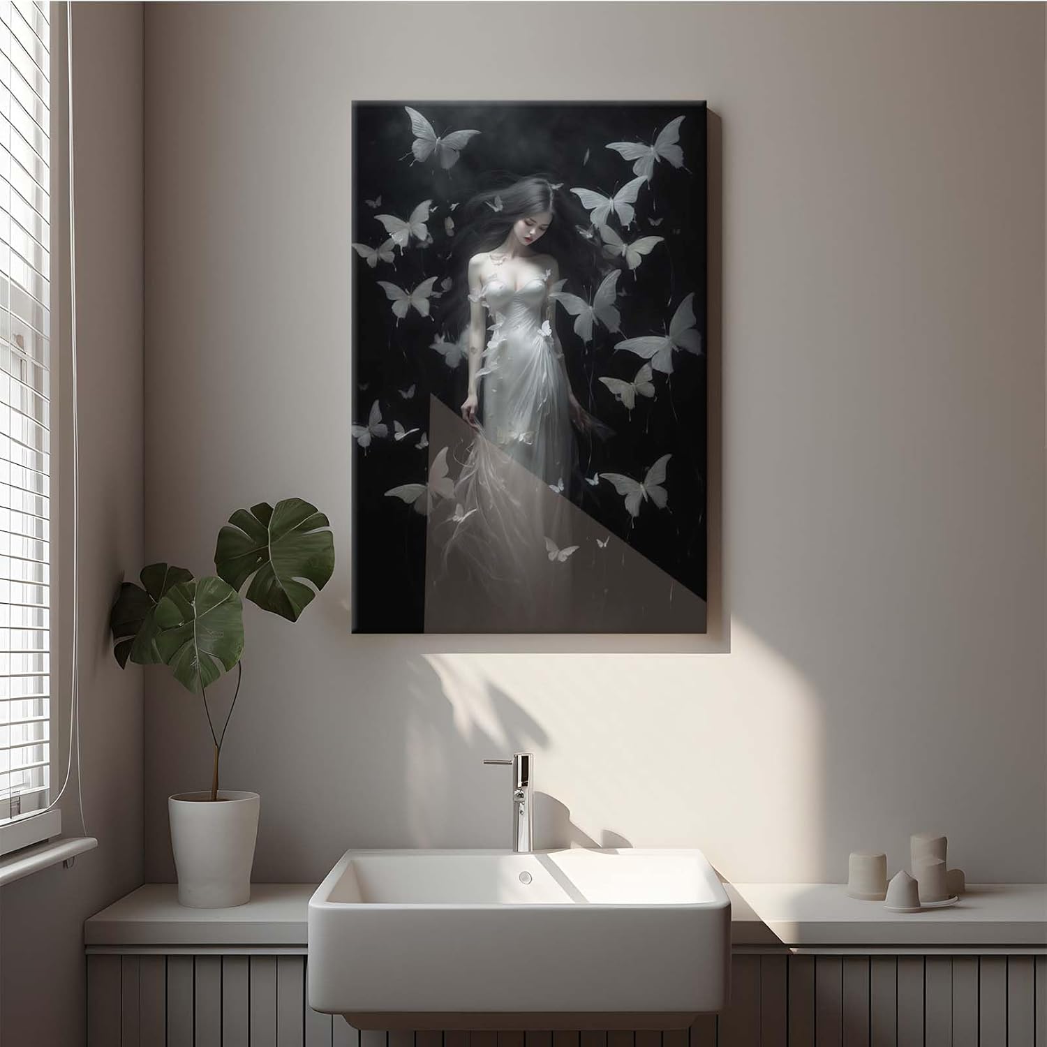 Vintage Gothic Feminine Canvas Wall Art Print Butterfly Poster Moody Female Wall Art Retro Artwork Dark College Decor for Home Bedroom8x12in Wood Framed