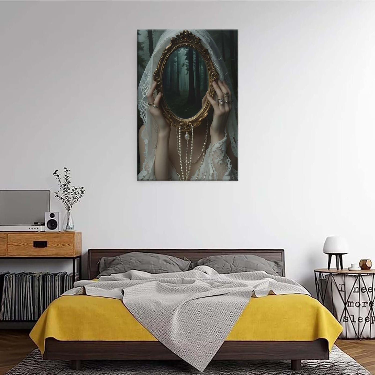 Mirror face covering dark art poster print melancholy gothic painting vintage feminine print victorian style decoration antique art28x40in Wood Framed