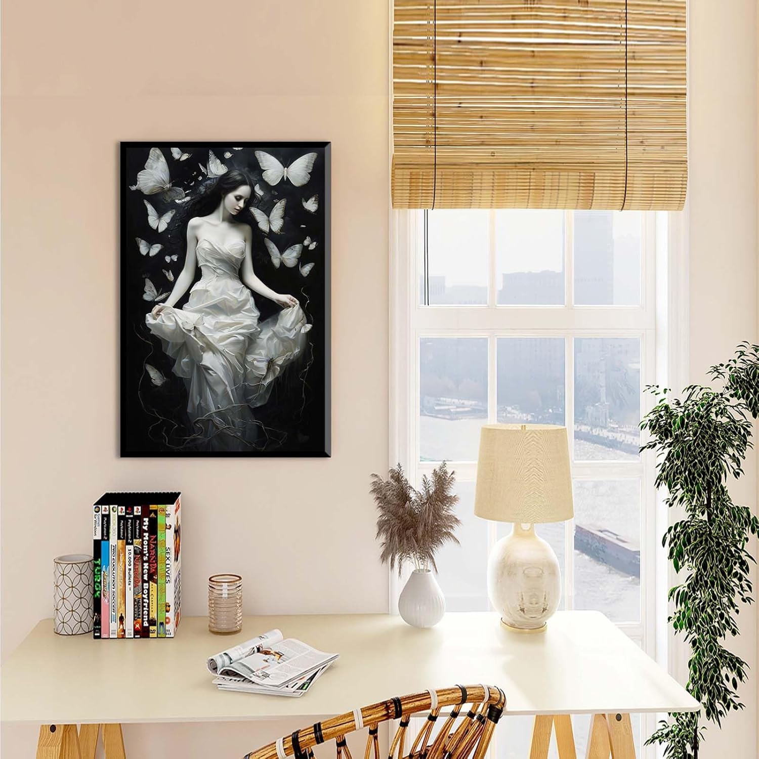JFHCQJPK Vintage Gothic Feminine Canvas Wall Art Print Butterfly Poster Moody Preppy Wall Art Dark College Decor for Home Bedroom8x12in Metal blackFramed
