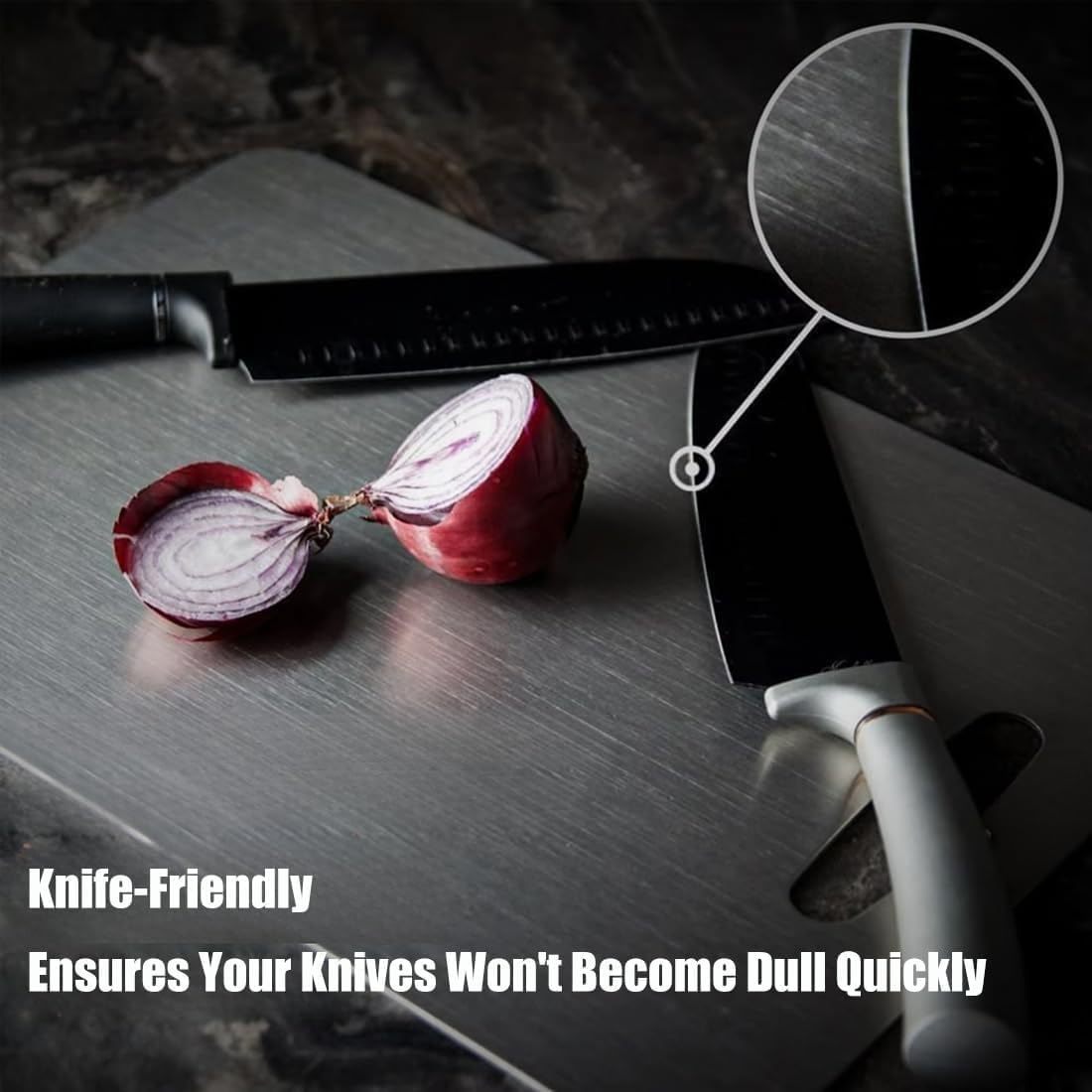 - 【Healthier and Safer】Our cutting boards are made of 100% pure titanium, which is a trusted material for surgical implants. Unlike wooden and plastic cutting boards, pure titanium cutting board do not absorb liquids, and are easy to clean,do not leave any odors or subtle food residues, making them a healthy choice for your kitchen