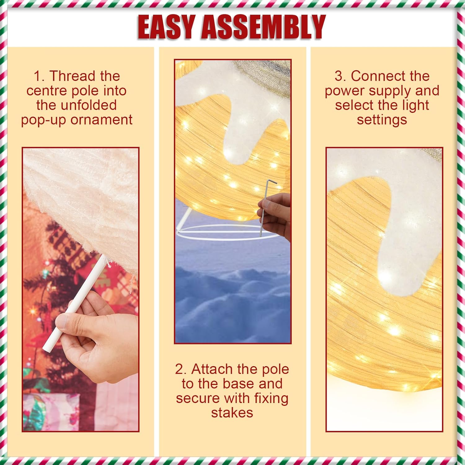 - Festive Decor: Elevate your outdoor holiday display with these large, lighted Christmas ornaments that collapse for easy storage