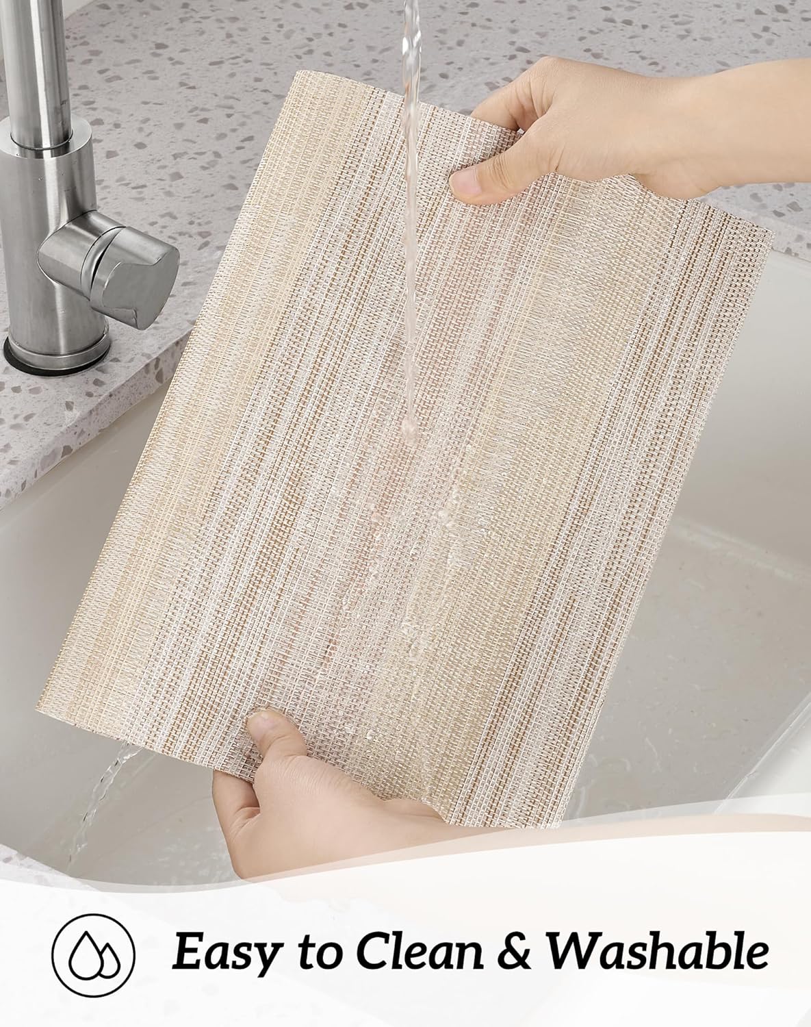 - Elegant and Practical Design: With a luxurious vinyl woven texture, precision cutting, and heat-trimmed edges, our double-sided placemats offer a sophisticated and practical solution. They provide a non-slip surface, resist fading, and are easy to clean, elevating your dining experience