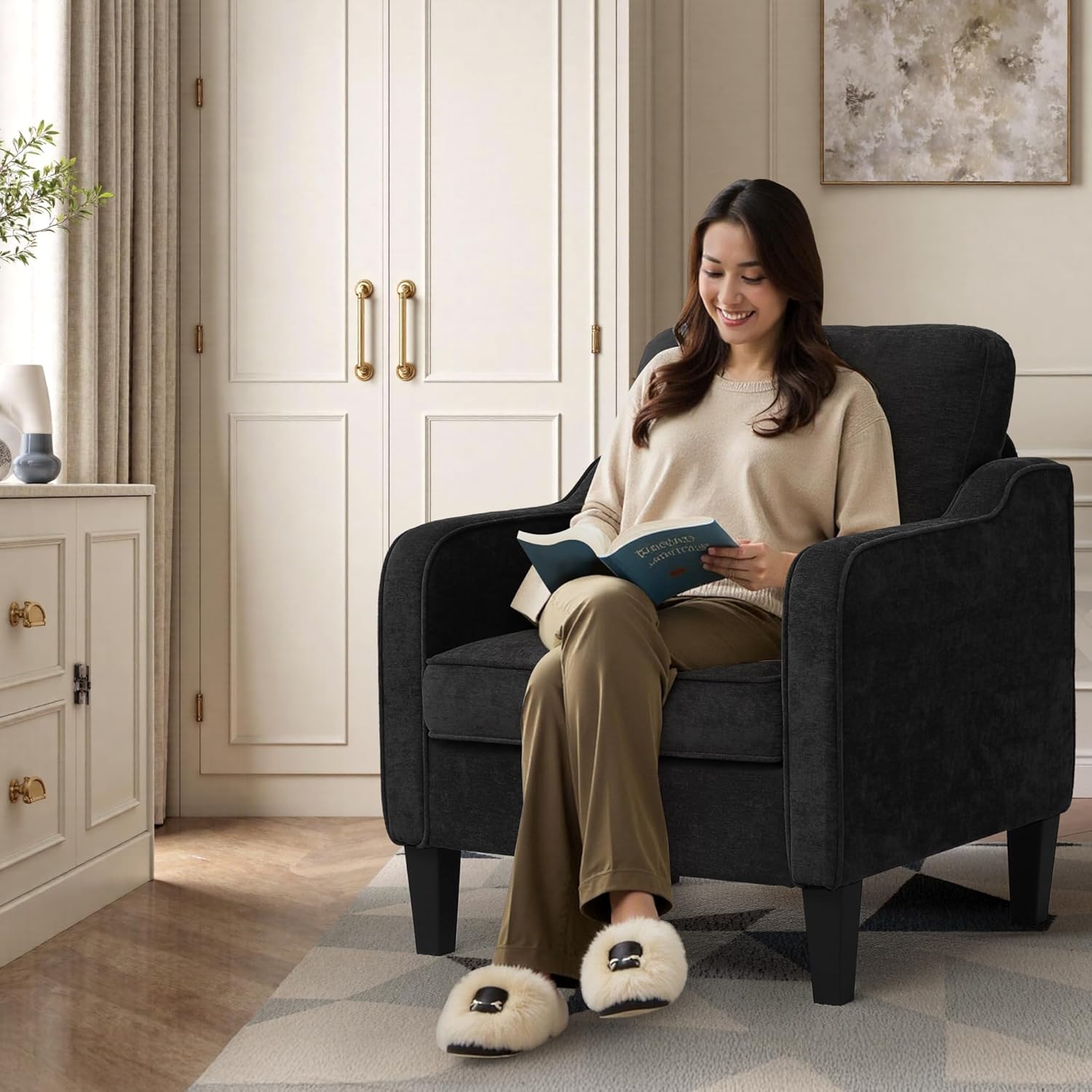 - ăComfortable SeatingăThe 5.7" thick seat of this living room chair are padded with high-density foam for superior comfort. The armchair with 115° seating angle offers enhanced support, reduces lumbar fatigue and ensures a comfortable seating experience. The armrests are perfectly aligned with your arms, providing your hands with plenty of support for long hours of reading, resting or relaxing.