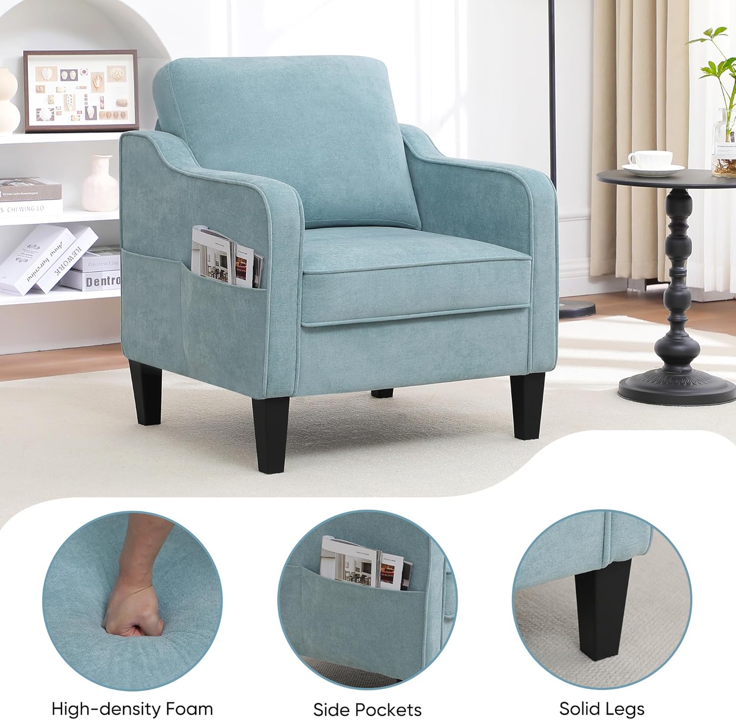 Accent Chair for Living Room, Mid Century Modern Reading Chair for Bedroom, Upholstered Armchair with Side Pockets, Comfy Single Sofa Side Chair for Office, Apartment, Small Room, Teal Green