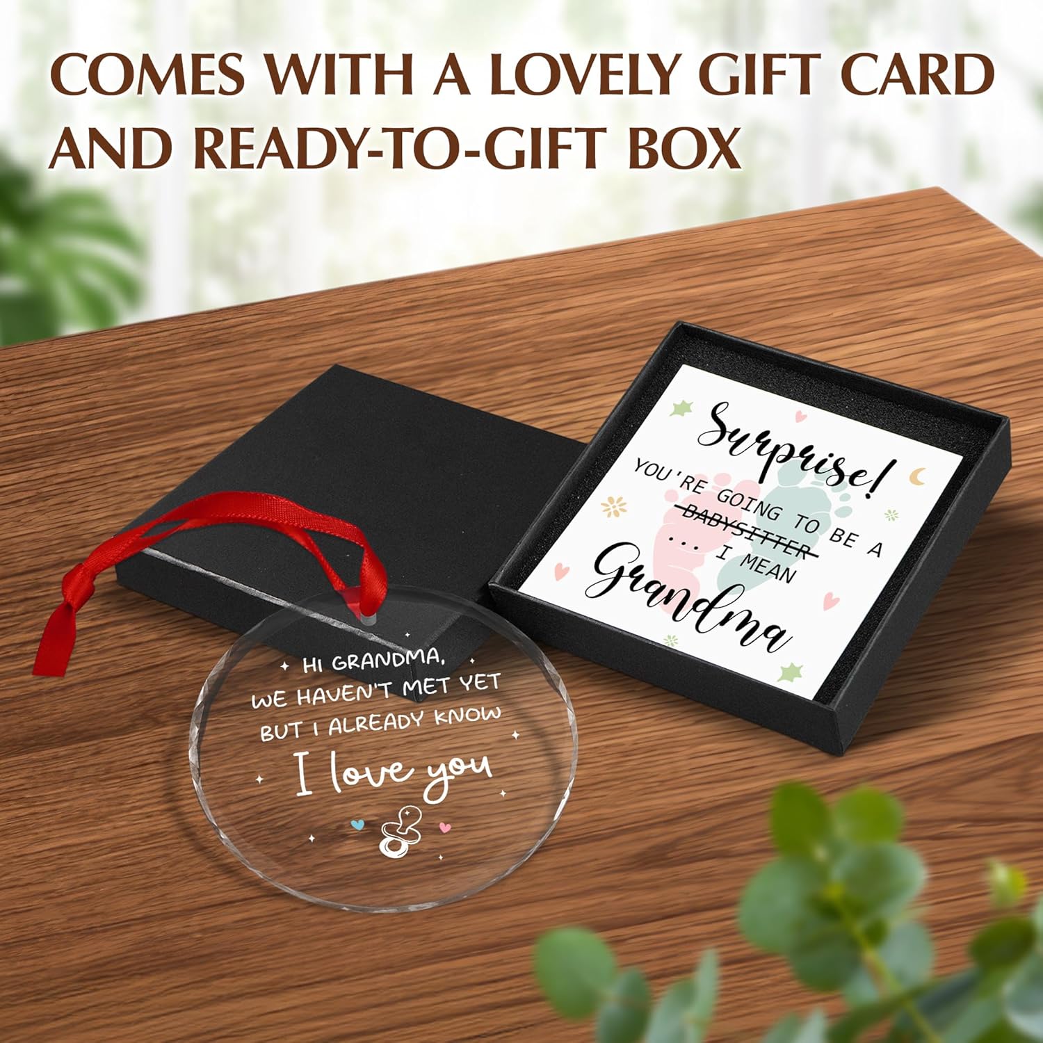 - GRANDMA PREGNANCY ANNOUNCEMENT β Add humor and heart to your coming soon baby announcement with our glass ornaments for tree. This grandparents baby announcement for grandma says "I Love You" before they met, making sweet grandma gifts for women from the baby-to-be, and lovely first time grandma gifts for anyone promoted to grandma!