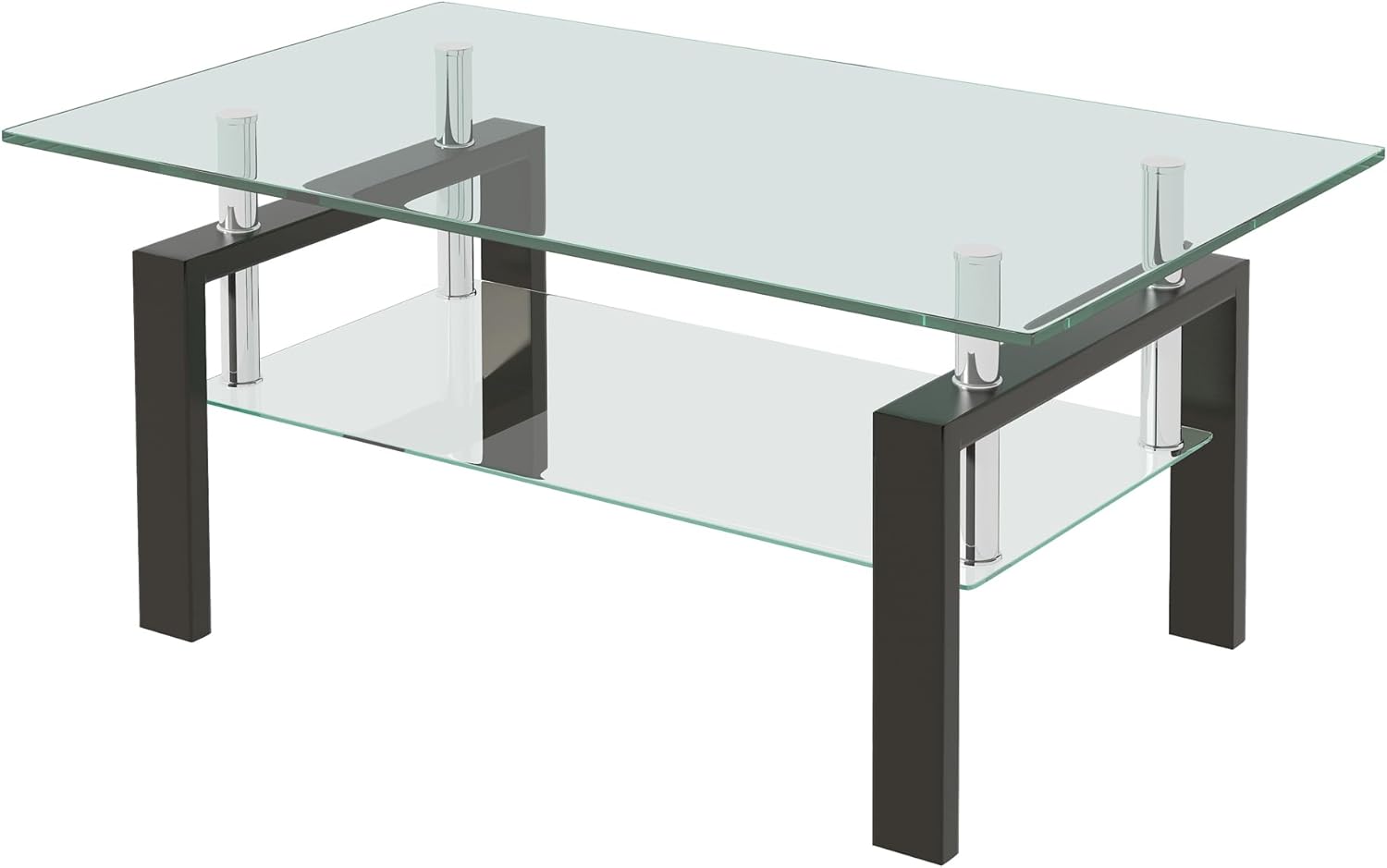 Glass Coffee Table Rectangle Living Room Center Table, with Tempered Glass Tabletop Black Metal Leg,for Living Room and Office (Dou-Clear Glass)
