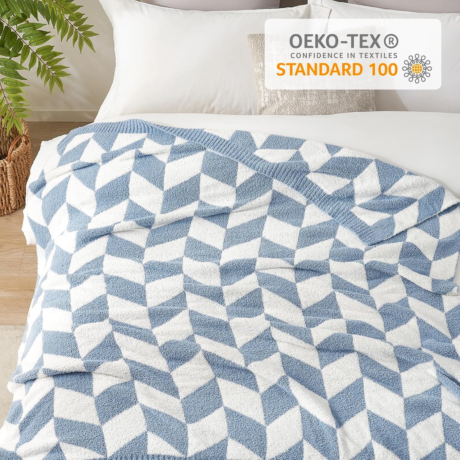 Snuggle Sac Chevron Throw Blanket for Couch, Reversible Super Soft Warm Blankets Cozy Knit Fuzzy Plush Lightweight Throws for Sofa, Bed, Camping, Blue, 50x60 inches