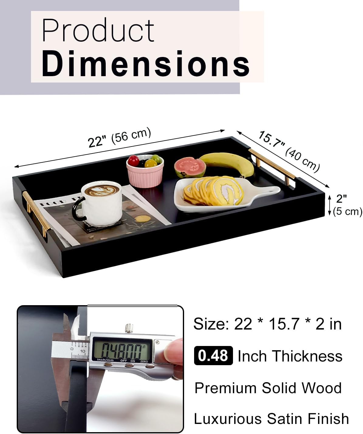 - PREMIUM WOODEN TRAY – Crafted from high-quality natural wood, this tray is sturdy and built to last. Unique dovetail joinery ensures durability, while the smooth, silky paint finish makes cleaning effortless.