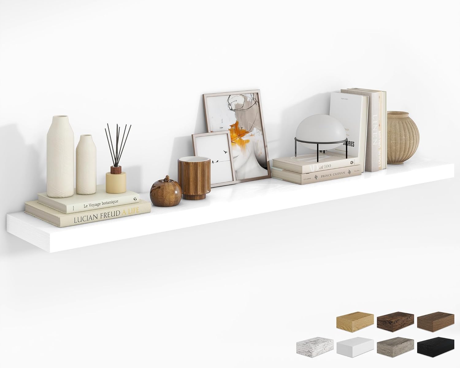 RICHFOCUS 72Inch Floating Shelves for Wall 1 Pack Shelves for Bedroom|Kitchen|Bathroom Wall Mounted Rustic Wood Floating Shelf with Invisible Brackets for Books|Storage|Decor, White