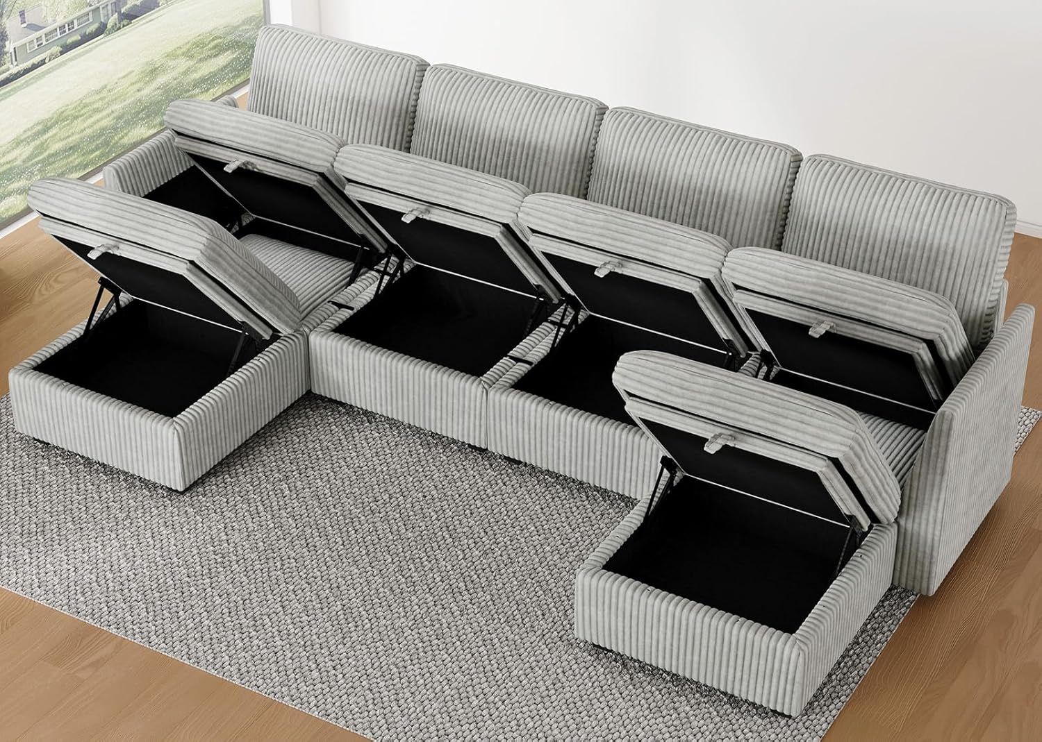 - Spacious Storage: Hidden storage under every Belffin module offers ample room for blankets, clothes, or daily essentials. Keep your living room neat and organized with a smart, space-saving design that’s as practical as it is beautiful.