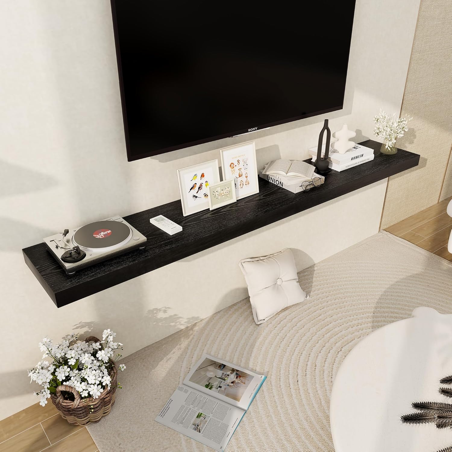 Fun Memories 72 Inch Floating Shelf, 12 Inch Deep Wall Shelf for Fireplace Mantel, Deep Storage Shelves for Home & Office, Wall Shelves with Invisible Bracket, Black, Set of 1