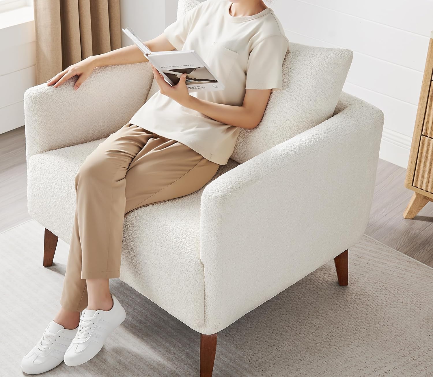 Oversized Accent Chair Modern Boucle Armchair for Living Room- 37" Wide Accent Chair with Solid Wood Legs, White Upholstered Lounge Chair for Bedroom & Office, Cozy Reading Chair (Easy Assembly)
