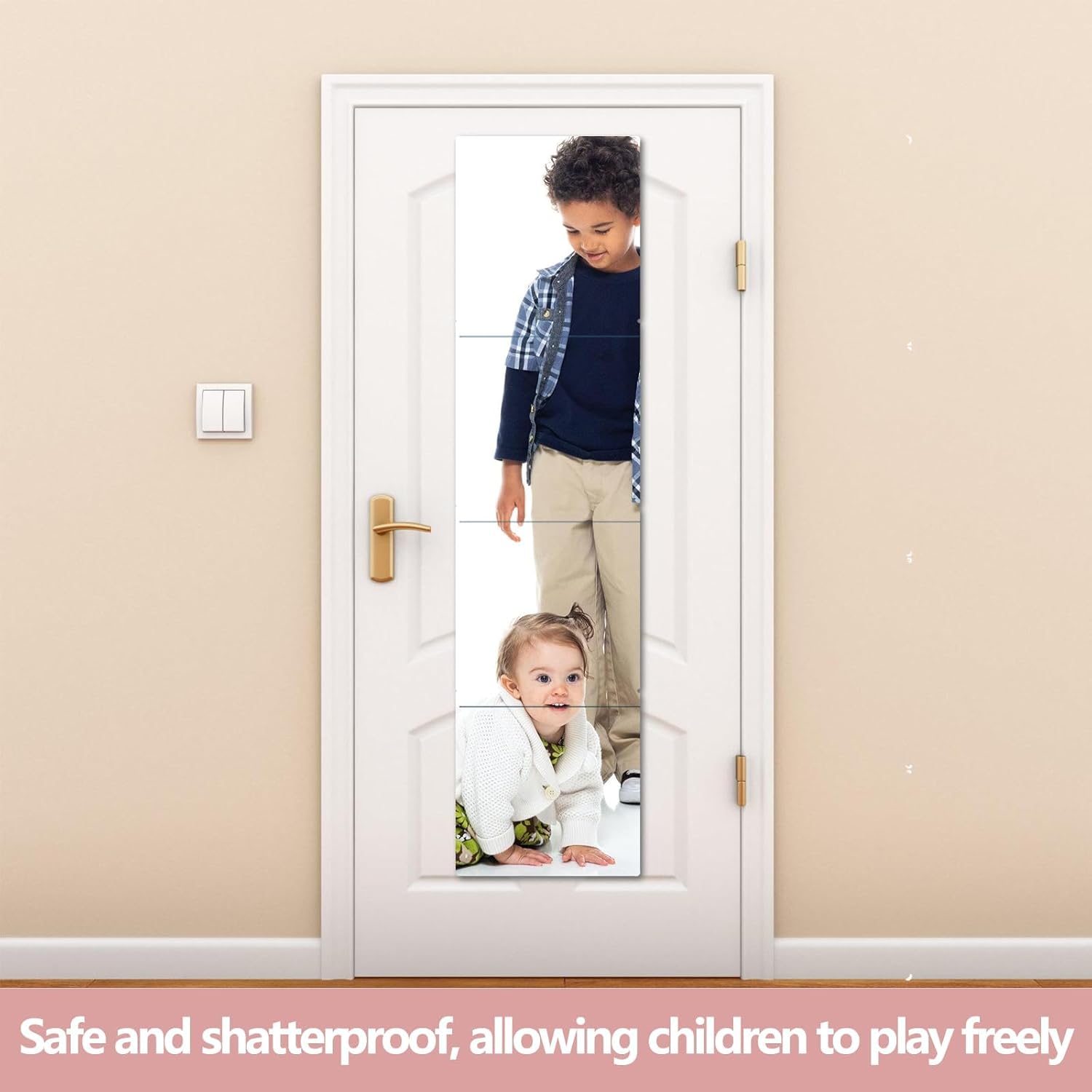 Unbreakable Full Length Wall Mirror,The Door Mirror,4Pack 13.5''x13.5'',Acrylic Mirror Kids,Shatterproof Plexiglass Long Mirrors for Bedroom Closet,Children Non Glass Stick on Mirrors