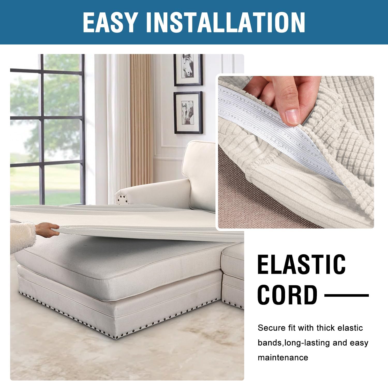 H.VERSAILTEX Super Stretch Individual Chaise Cover Sectional Couch Covers for L Shaped Sofa Both Left/Right Featuring Thick Jacquard Textured Twill Fabric (1 Piece Chaise Cover Large, Porcelain)